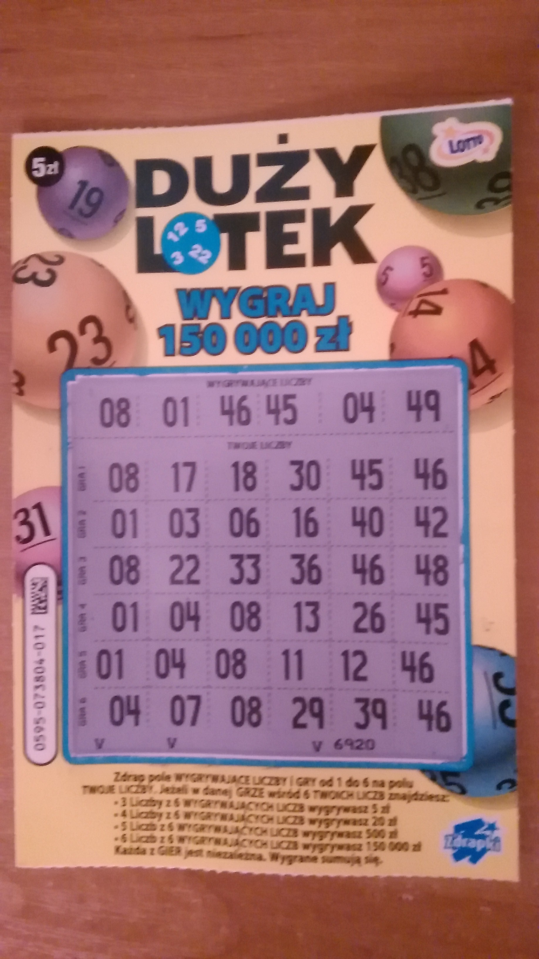Nie mam szczęścia do tej zdrapki. Dzisiaj wydrapałem 8 sztuk w kolekturze i było tylko 2 razy po 5 zł