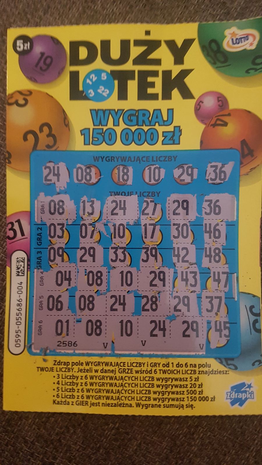 Kolejna ciekawostka! W tej zdrapce w ogóle nie występują liczby 05 i 20. Zapewne przez to że trójka daje 5zł, a czwórka 20zł.