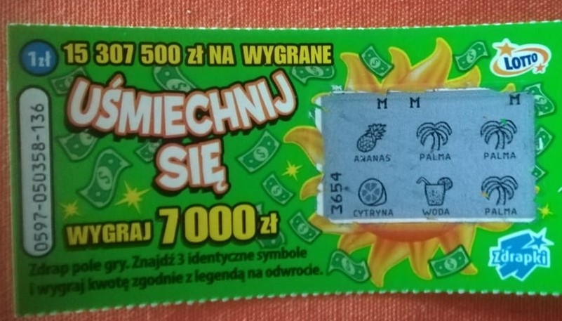Heh, dzisiaj wziąłem 5 sztuk i znowu wydrapałem 3 palmy za 10zł (126). Pozostałe losy puste.