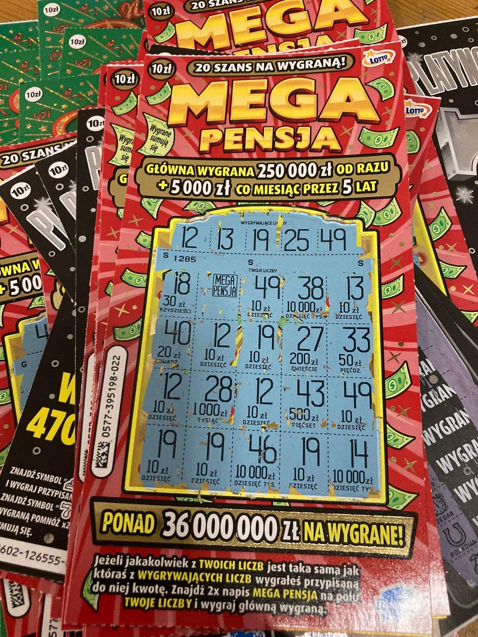 Kupiłem sobie dzisiaj do hotelu 33 zdrapki po 10 zł i tak:
