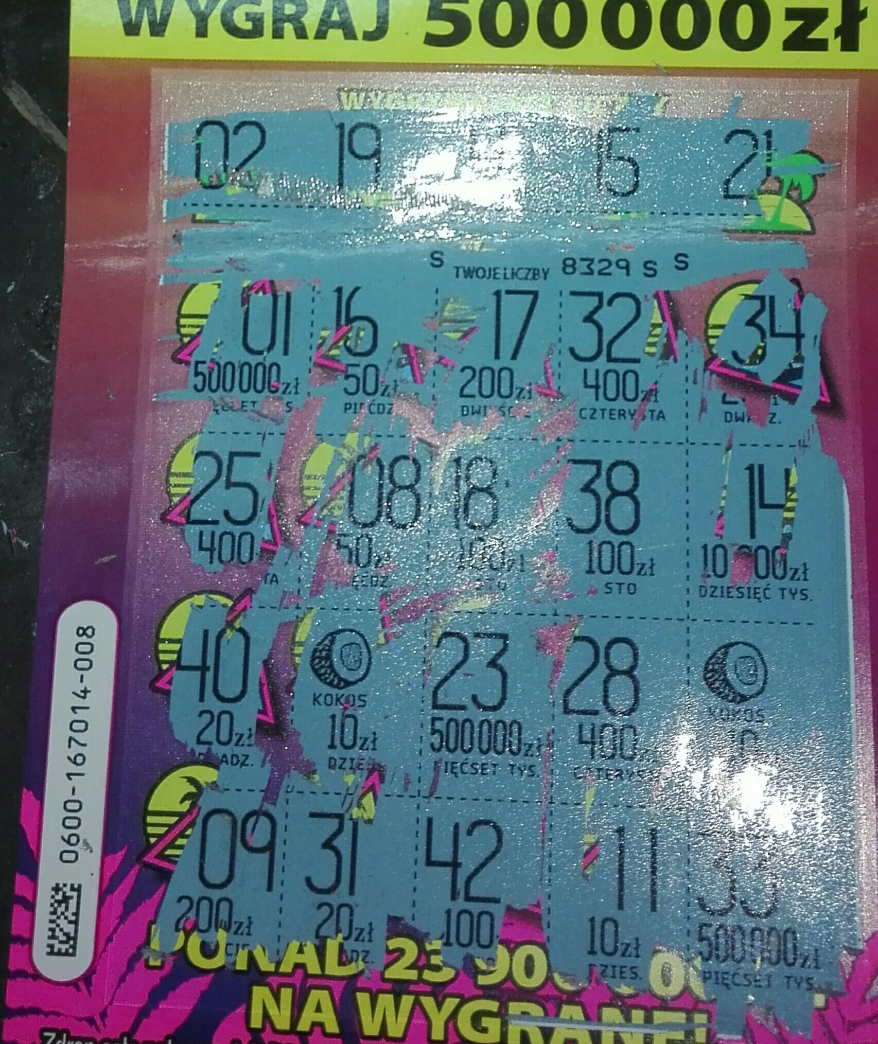 Jedna sztuka kokosowej i niestety nic, ale była to jedyna pusta zdrapka dzisiaj