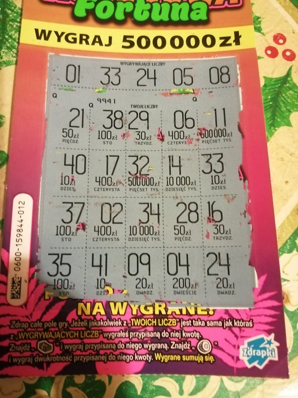W dniu 03.11.2021 padła pierwsza główna wygrana w zdrapce