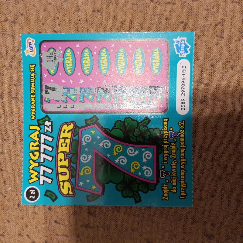No : ) Niby niewiele, ale jeśli to jedna sztuka ze zdrapkomatu przy okazji zakupów to cieszy - w sumie siedmiokrotność. Szkoda, że 77 zł mi nie wpadło, ale stopień niżej coraz częściej bywa.