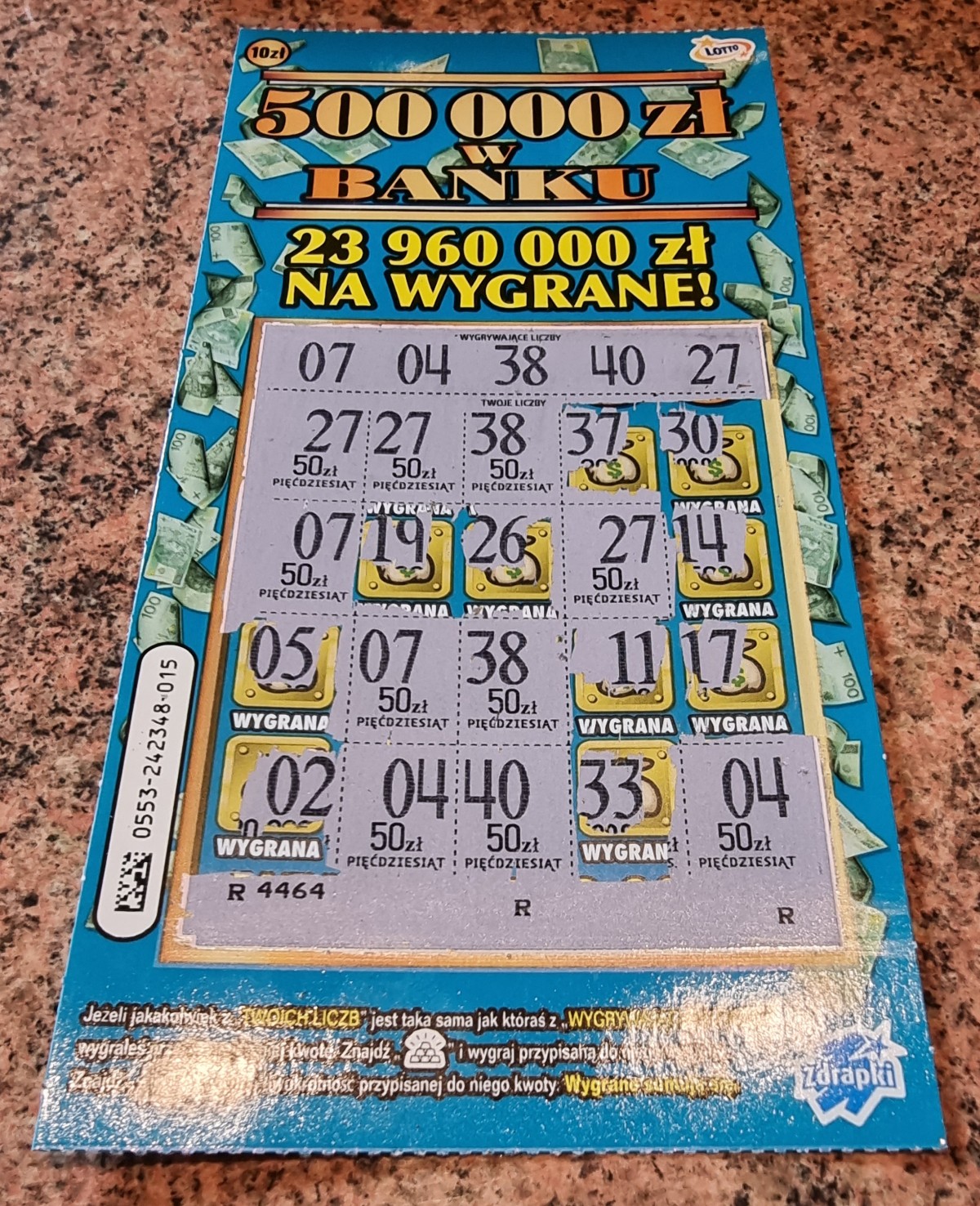 no udało mi się zdrapać te 2 paczki, bilans to 2x110zł + taki rodzynek ze zdjęcia