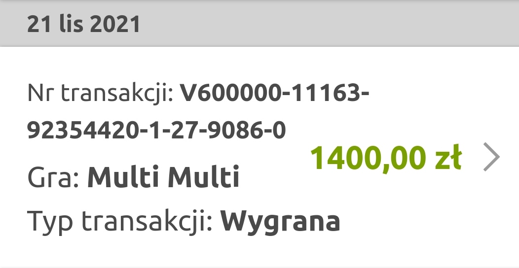 Jeden zakład z dobrze przemyślanym własnym zestawem liczb. Nie gram w mm co losowanie. Tylko jak mam przeczucie, że dany układ liczb ma dużą szansę na wylosowanieDamian1309 pisze: ↑22 lis 2021, 19:11Gratki.Ty to grasz na wlasne liczby czy z maszyny? Jeden zaklad czy wiecej?