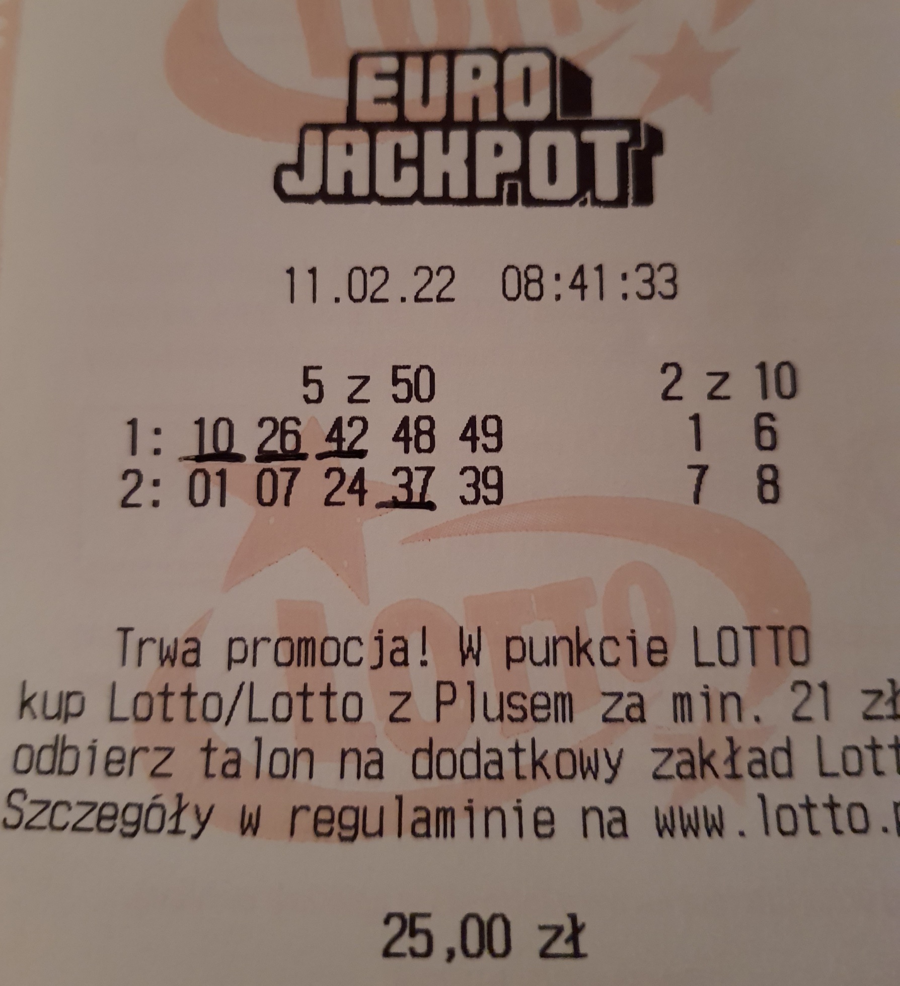Re: EUROJACKPOT - WYGRANE NA FORUM