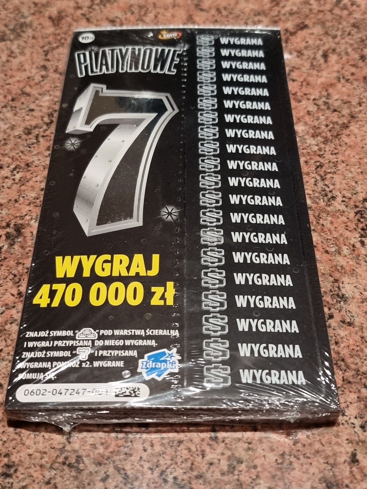 Wymieniłam wygraną zdrapkę i wzięłam platynowe 7, w którym było 50 zł. O ile sobie przypominam to chyba moje pierwsze w tej zdrapce. Dziwne, że tygodniami nic nie wpada ciekawego, a jednego dnia kupione dwie zdrapki i w obydwu fajne wygrane. I to jeszcze w numerach, których nie lubię -1 i 25.