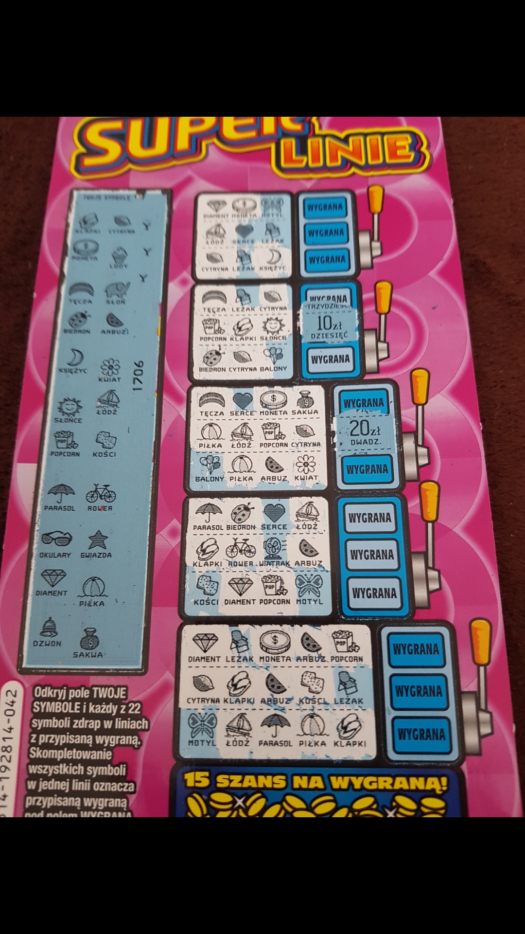 Wczoraj wpadło 30 na 022, dziś kupiłem po jednej w trzech budach i nic. Ale w/g mnie jeśli idzie oczywiście o wygrane pośrednie, jedna z lepszych zdrapek po 5. Tylko wysokość głownej nie powala-ale też niby "łatwiej" ją trafić. Powoodzenis