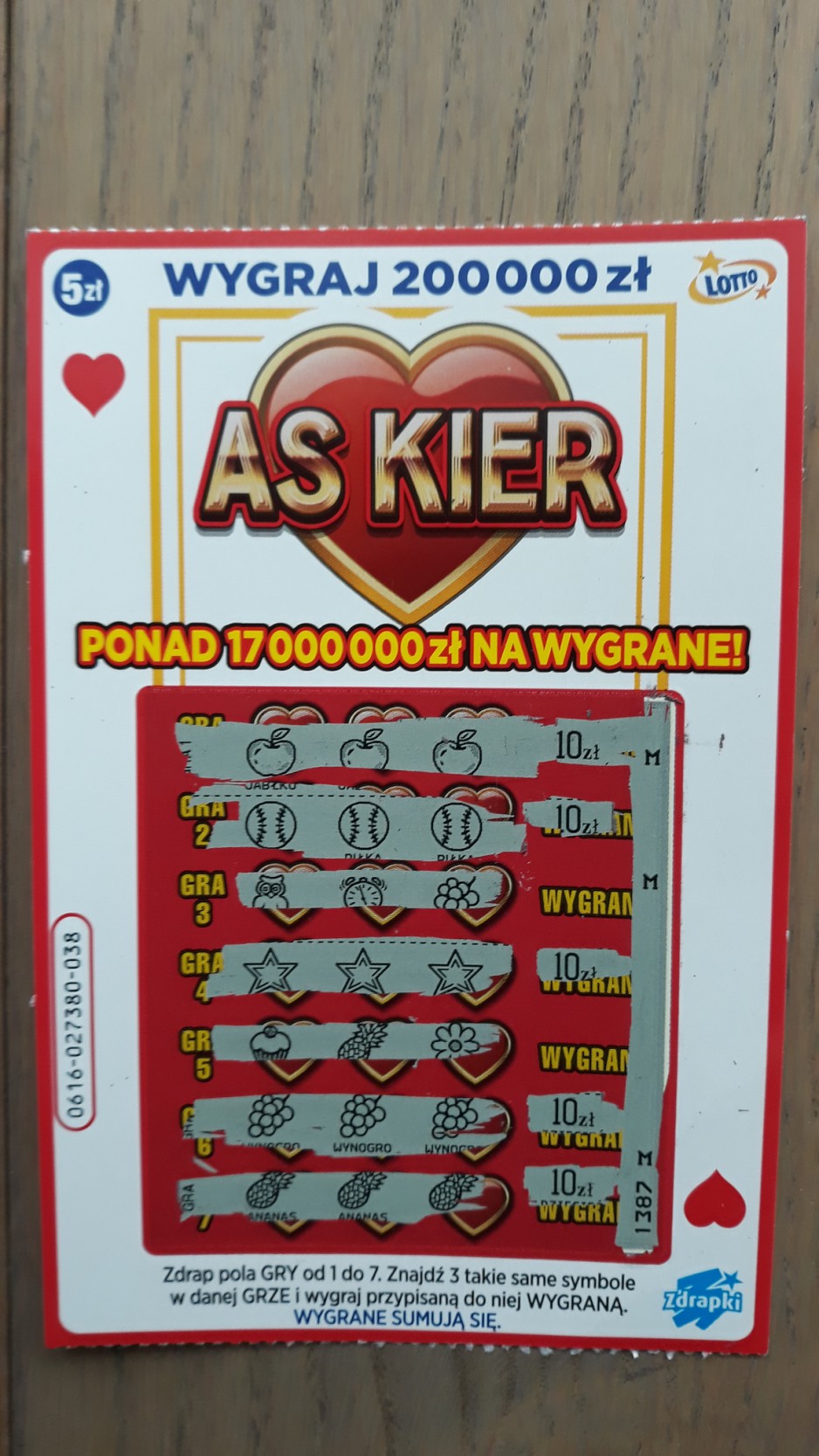 Kupiłem pierwszy i prawdopodobnie ostatni raz. To, że pustak to oczywiste, ale drapiąc od lewej do prawej, ani choćby raz nie miałem podwójnego symbolu więc EMOCJE żadne. W zdrapce za 1 zł jest więcej emocji niż tu, a ten gniot kosztuje 5 zł. Naprawdę można o wiele lepiej wydać 5 zł jeśli chodzi o zdrapki.