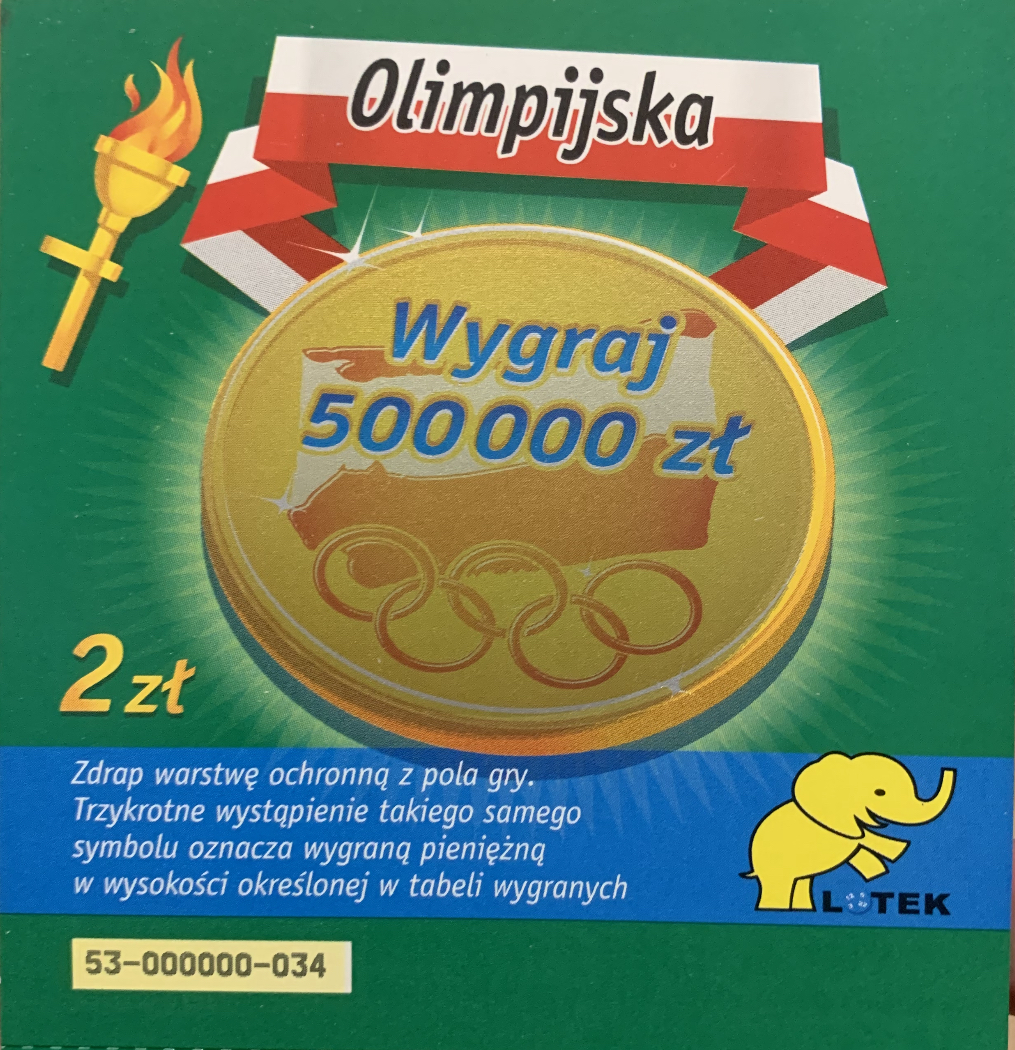 Tak dla przypomnienia pierwsza olimpijską zdrapką była „Loteria na medal” za 2 zł wydana w 2002 roku, to już właściwie 20 lat temu, 2 lata później w 2004 pokazała się zdrapka „Olimpijska” również przy cenie 2 zł. Dopiero w 2008 roku ukazał się jednozłotówkowy „Złoty Medal” mający wznowienie w 2010 roku.