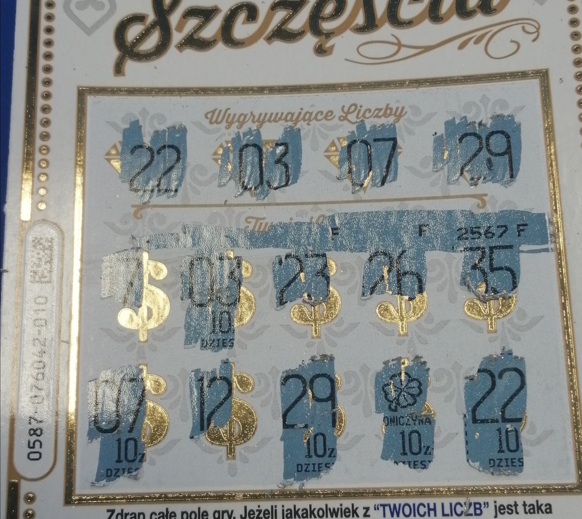 Zostało mało losów i 2 główne ale tu też mam poważne wątpliwości co do dostępności tych głównych. Zdrapka typowo na urodziny, imieniny, wesele itp. Wiele zdrapek trafiło w ręce osób które nie ogarniają tematu i pewnie dużo wygranych poszło w kosz. Radzę kupować ją ostrożnie, jesli już...
