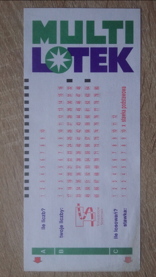 Również posiadam! W komplecie do tego trójdzielne etui z hasłem „ Multi Lotek - Twój klucz do szczęścia”. Jest to pierwszy blankiet do ML wydany na pierwsze losowania, a pierwsze miało miejsce 18.03.1996. Na kolejnym blankiecie było już znane nam wszystkim logo Multi Lotka z kulą wrysowaną w literę O.