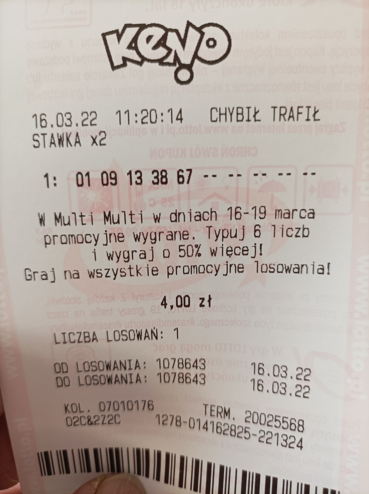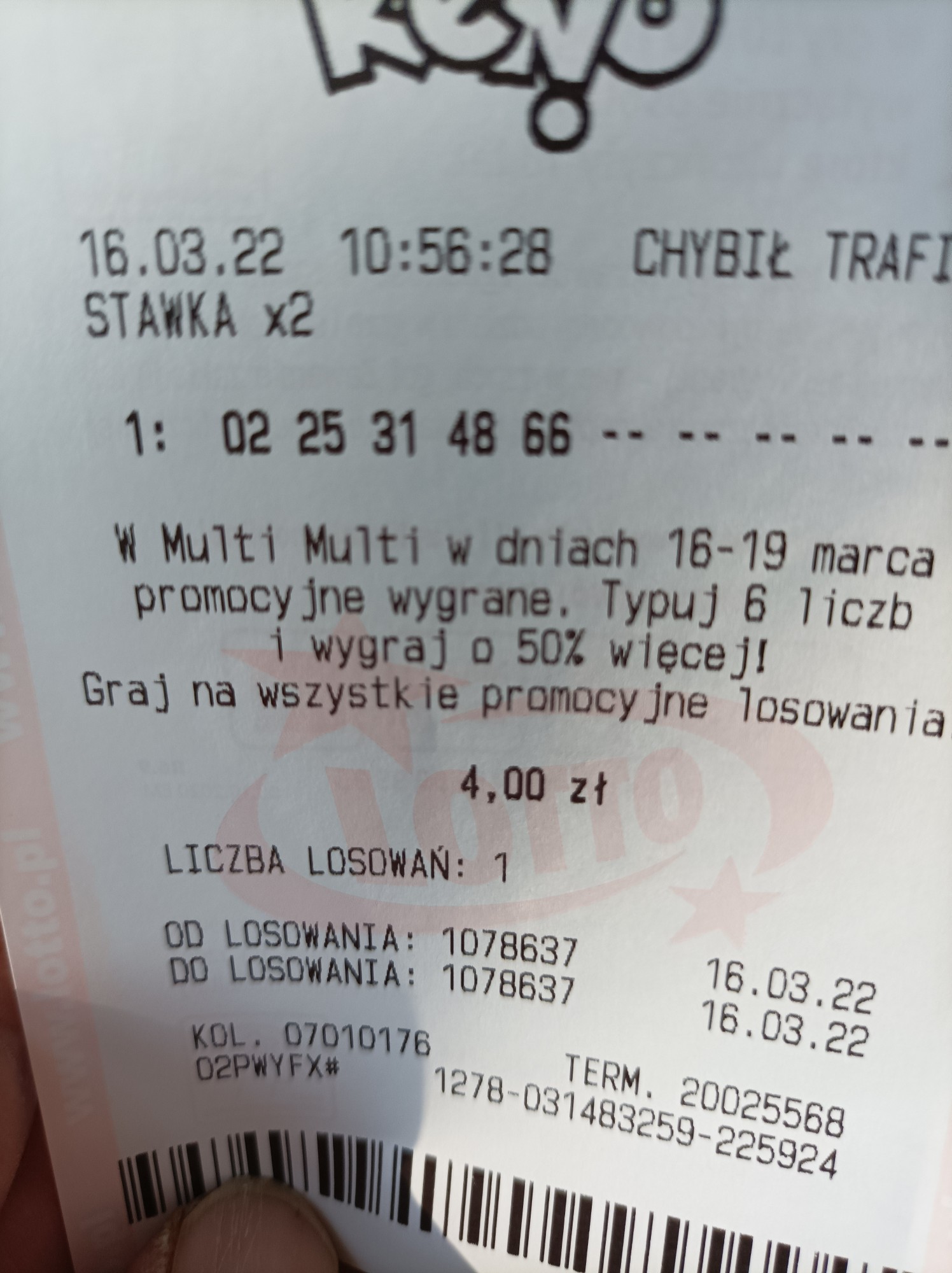 Rano miałem 5/5 chybika na 2 los- nie weszło nic