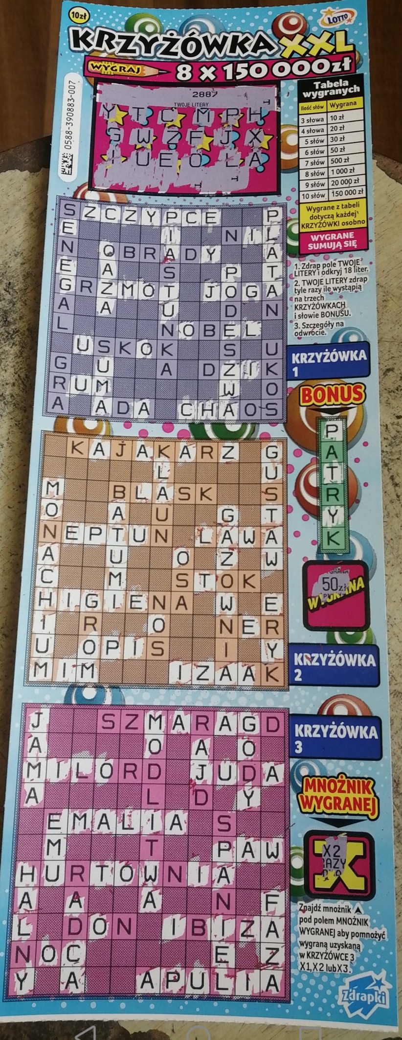Swoją drogą, ta wygrana zdrapka to właśnie jedna z dwóch ostatnich sztuk w kolekturze