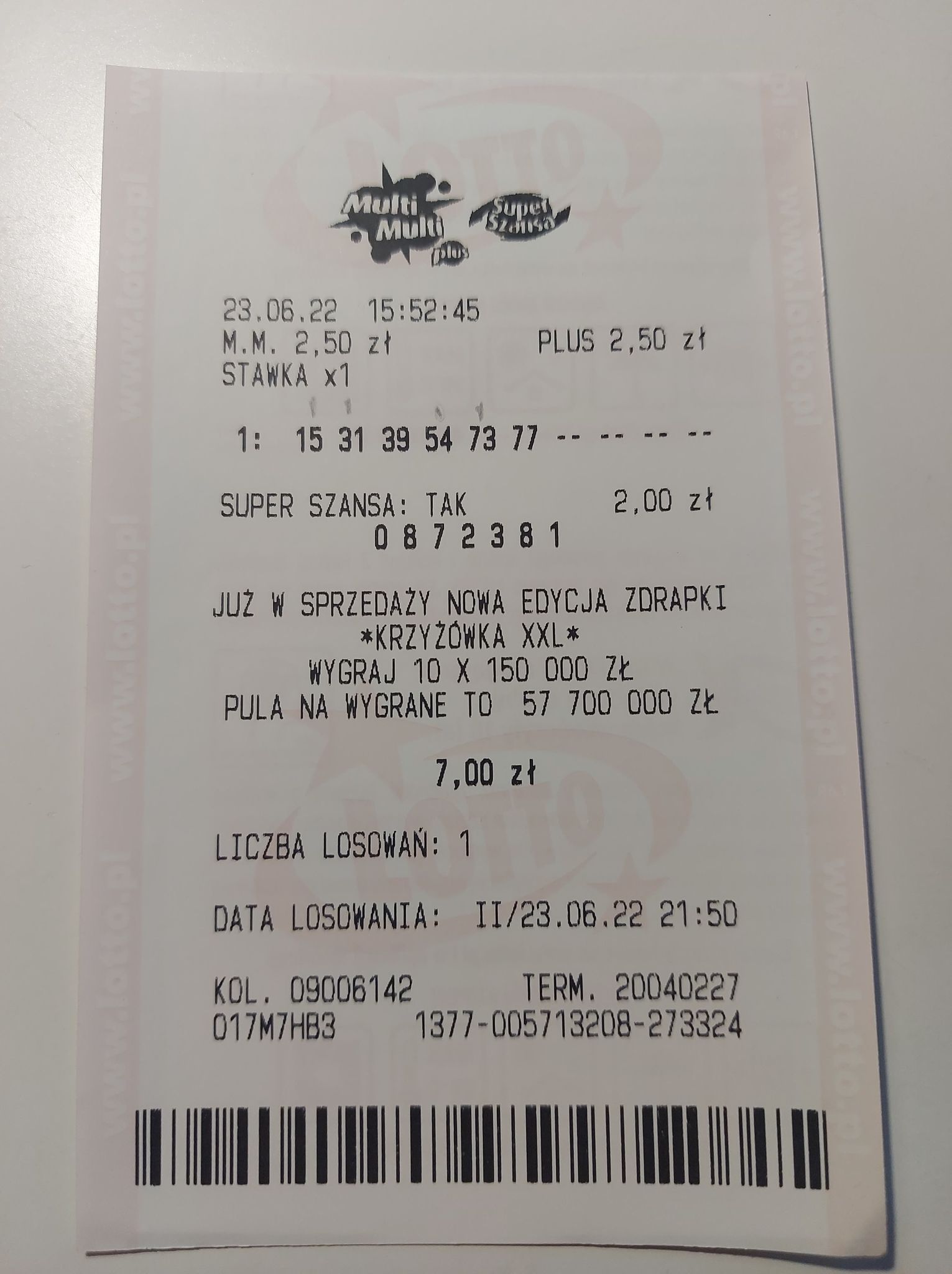 w obu losowaniach 1/7 lub 2/7 w każdym zakładzie, zaczynamy standardowo