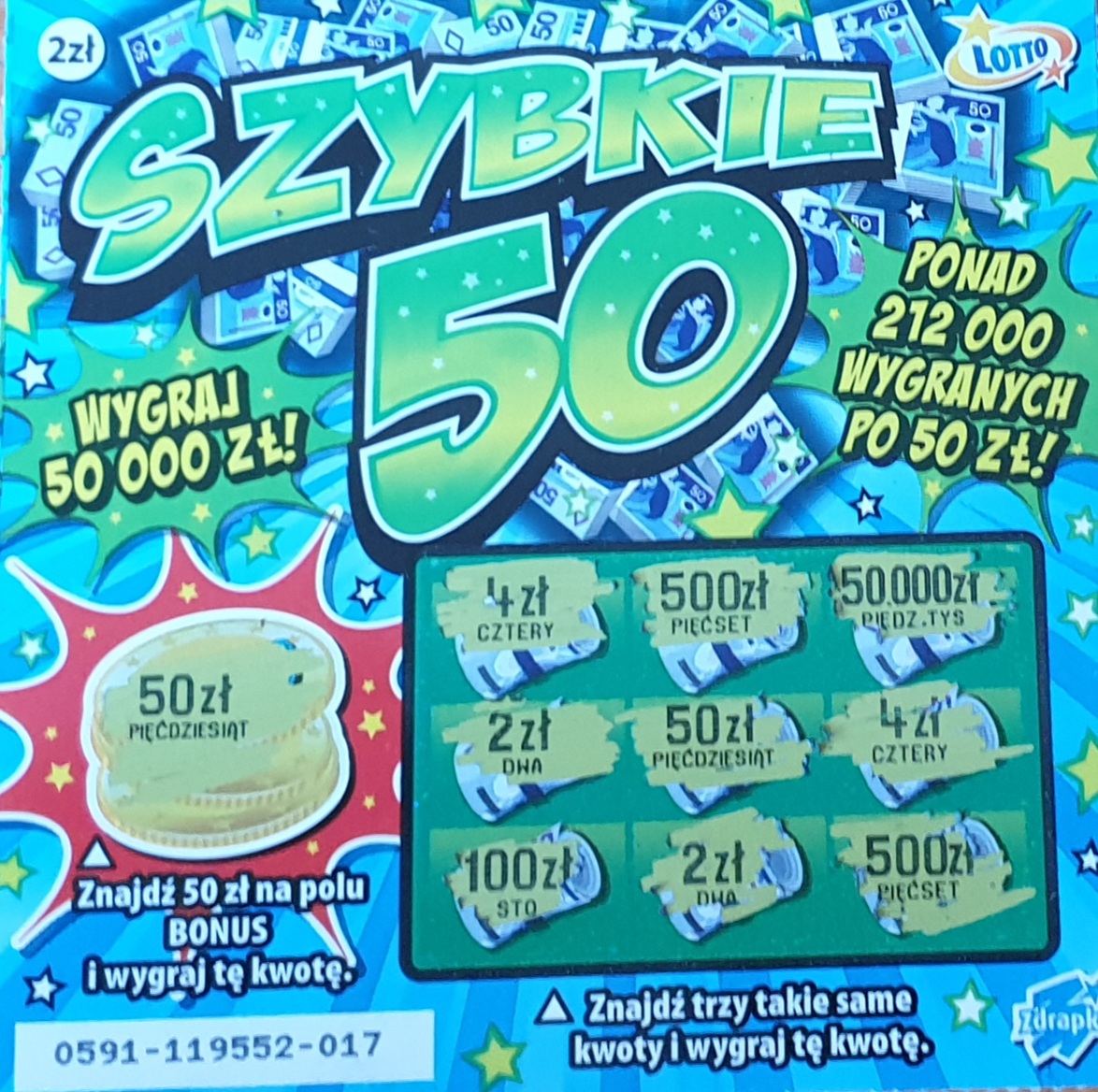 Ładnie ładnie ! Ile sztuk bierzecie zwykle, drapiący szybkie 50 ? Mi się jedyny raz udało wydrapać w tym 50 zł chyba jakoś w 2019 roku - wówczas wziąłem 5 sztuk. Ogólnie prawie zawsze mam puste, nawet 4 zł mi się za wiele razy nie zdarzyło - toteż mam jakąś głęboką niechęć do tej zdrapy. Może wezmę jedną jutro na przełamanie przy okazji