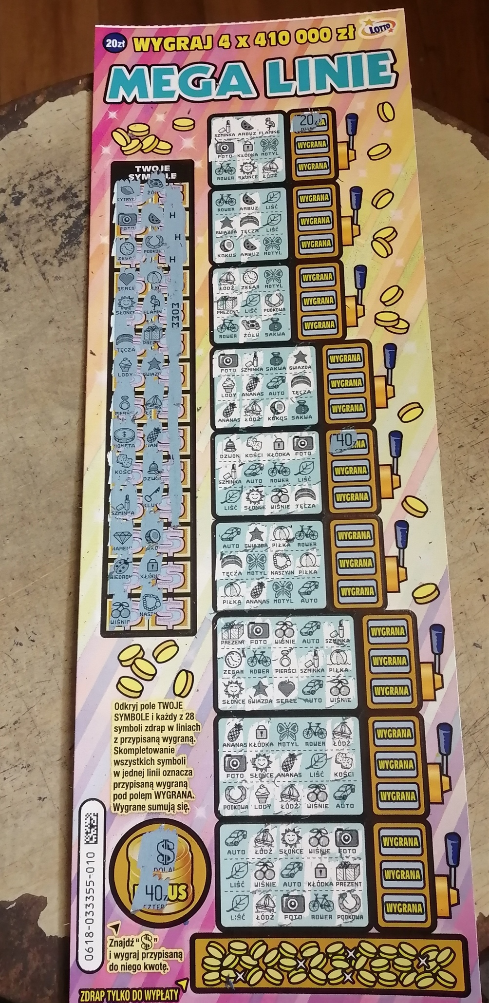 Ja dziś pierwszy raz skusiłem się na tę zdrapkę i w 014 wpadł zwrot. Raczej więcej nie kupię, ale przygoda spoko