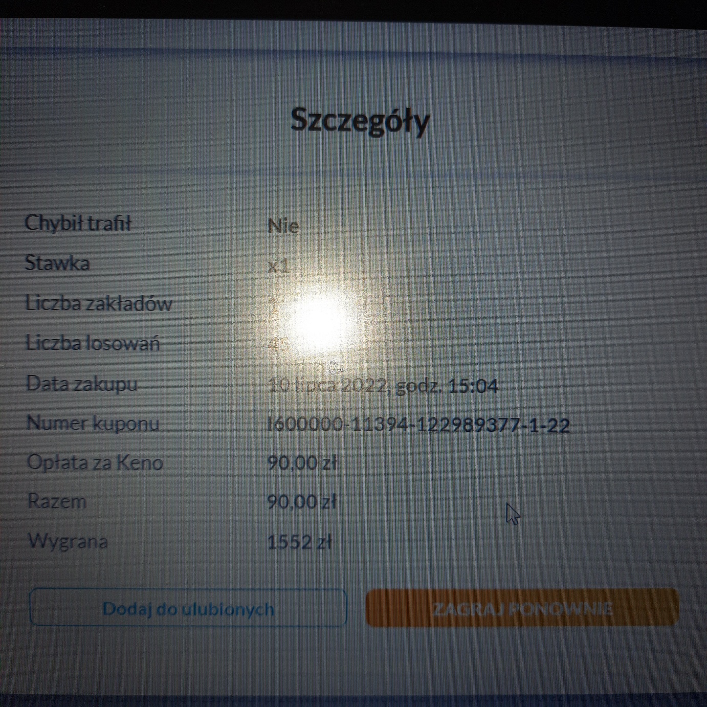 Pierwszy raz zagrałam w keno 18 czerwca zaszalałam