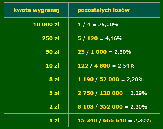 Dalej nikt nie wygrał ale tych pozostałych nagród jest tak mało więc jeśli nie trafimy na główną to 99% będzie na minusie . Czekam jak zejdzie poniżej 30tys to może coś jeszcze zagram . A dzisiaj jestem +100zł na zakładzie w keno .