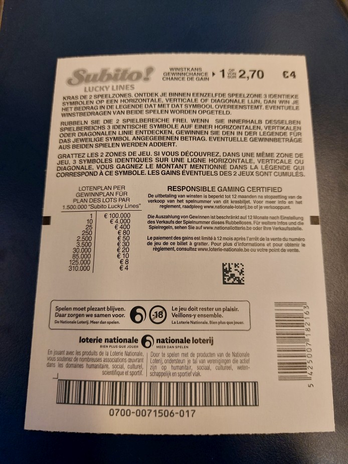 Będąc w ostatnich dniach w Belgii skusiłem się na dwie zdrapki w dworcowym sklepie - po jednej za 3 i 4 euro. Obie zdrapki oferują po dwie gry.