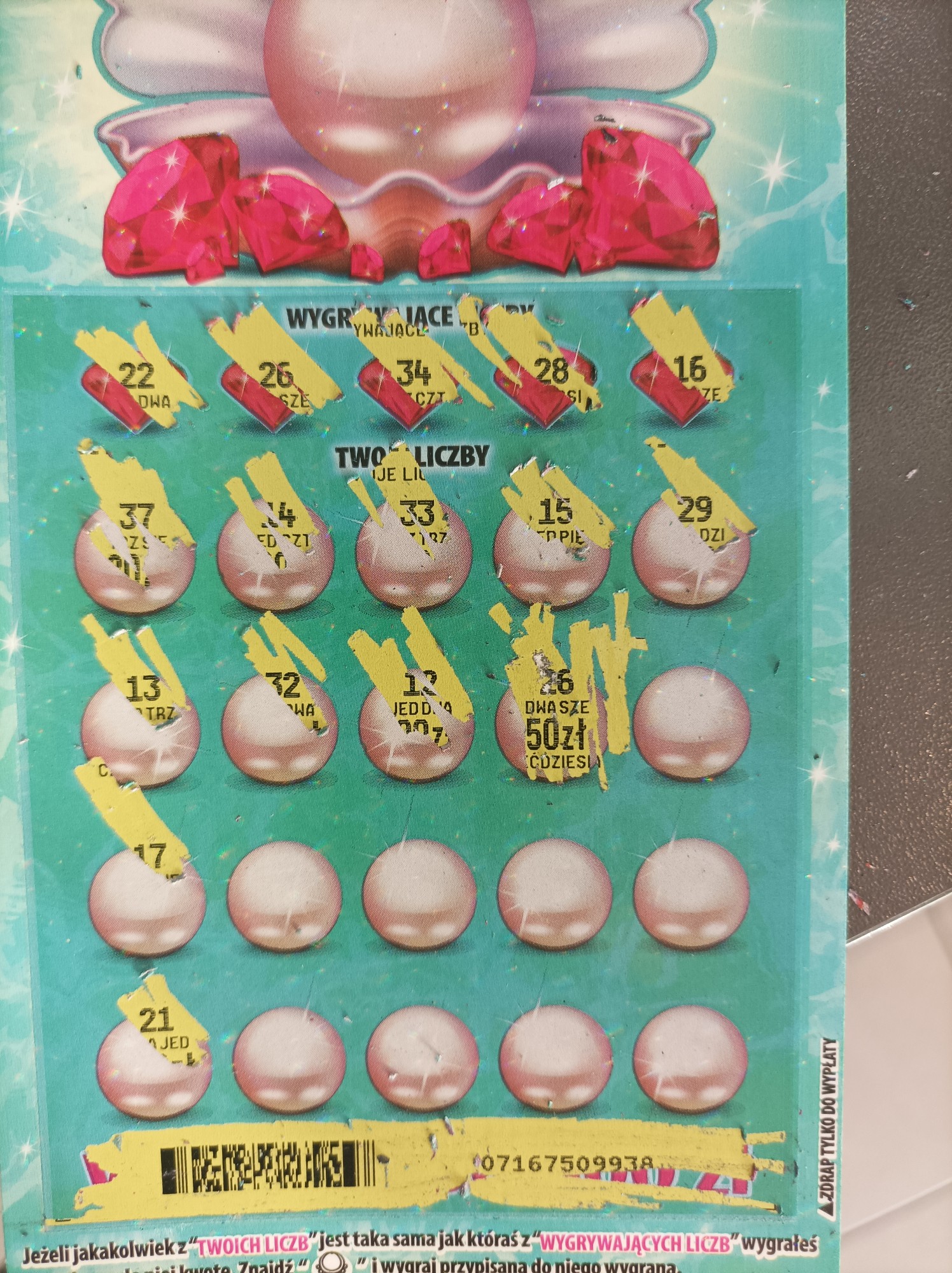 No i po kilku jak dotąd wykupionych sztukach, częściej chyba coś trafiam aniżeli jest pustak. Dziś 1 szt. 001 i wpadło chyba drugi raz 20 zł (XXX). Maxi Cash i Mega Pensja za to się u mnie "popsuły" więc nie wykluczam, że częściej będę brał Perły.
