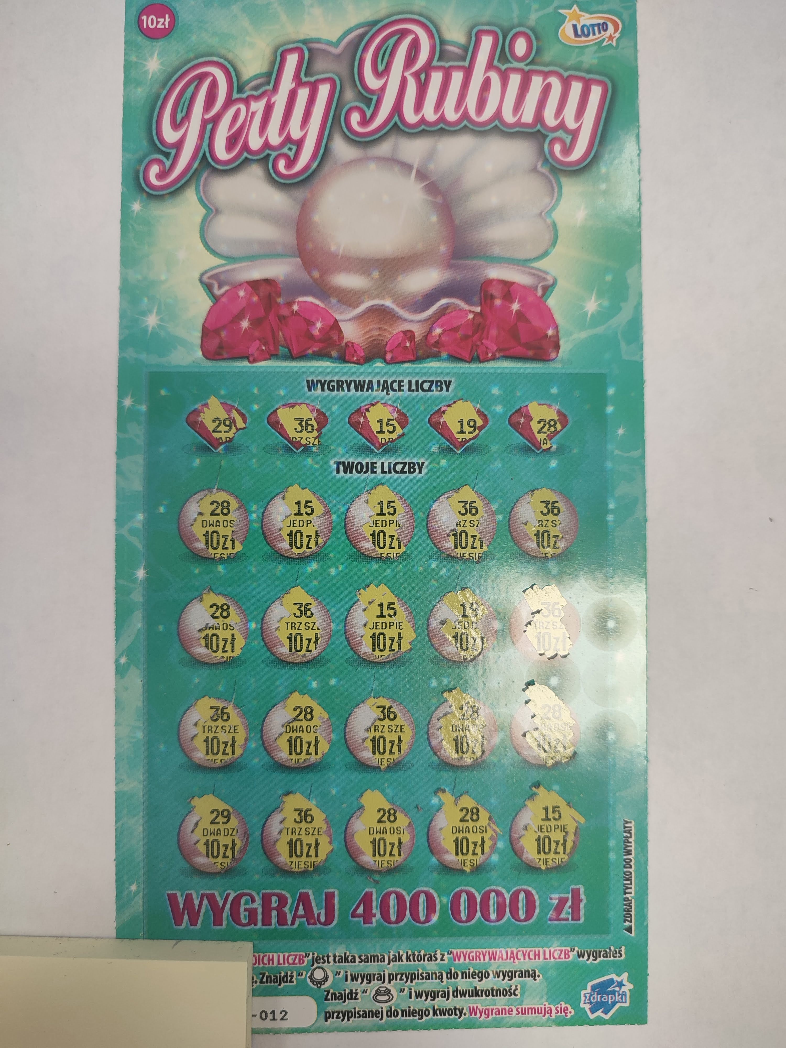 No i po kilku jak dotąd wykupionych sztukach, częściej chyba coś trafiam aniżeli jest pustak. Dziś 1 szt. 001 i wpadło chyba drugi raz 20 zł (XXX). Maxi Cash i Mega Pensja za to się u mnie "popsuły" więc nie wykluczam, że częściej będę brał Perły.