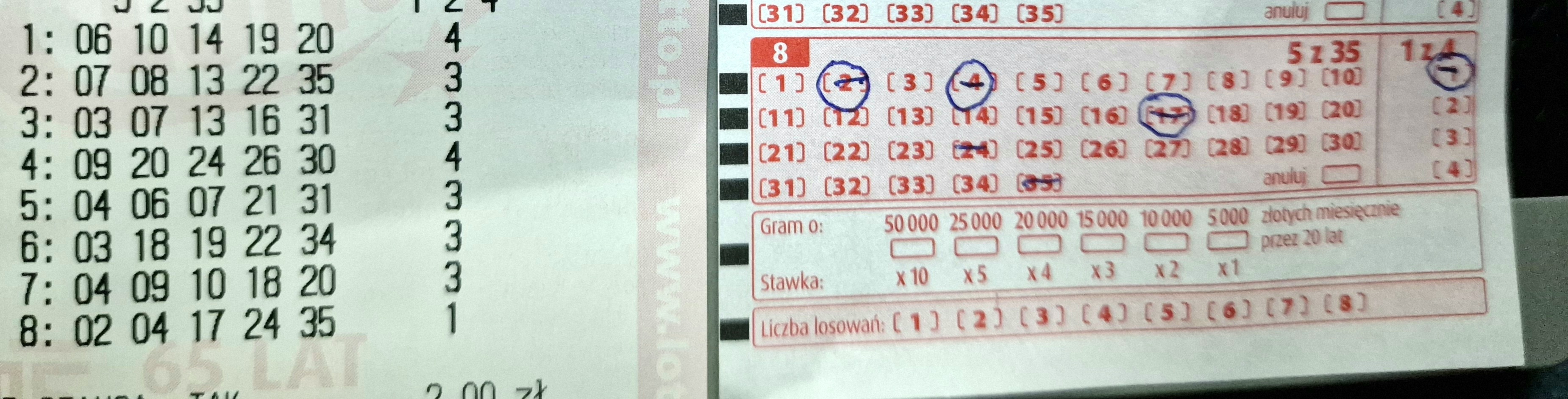 Wykupilam wczoraj kupon na 2 losowania, moze dzisiaj trafie cala ekstra premie :D
