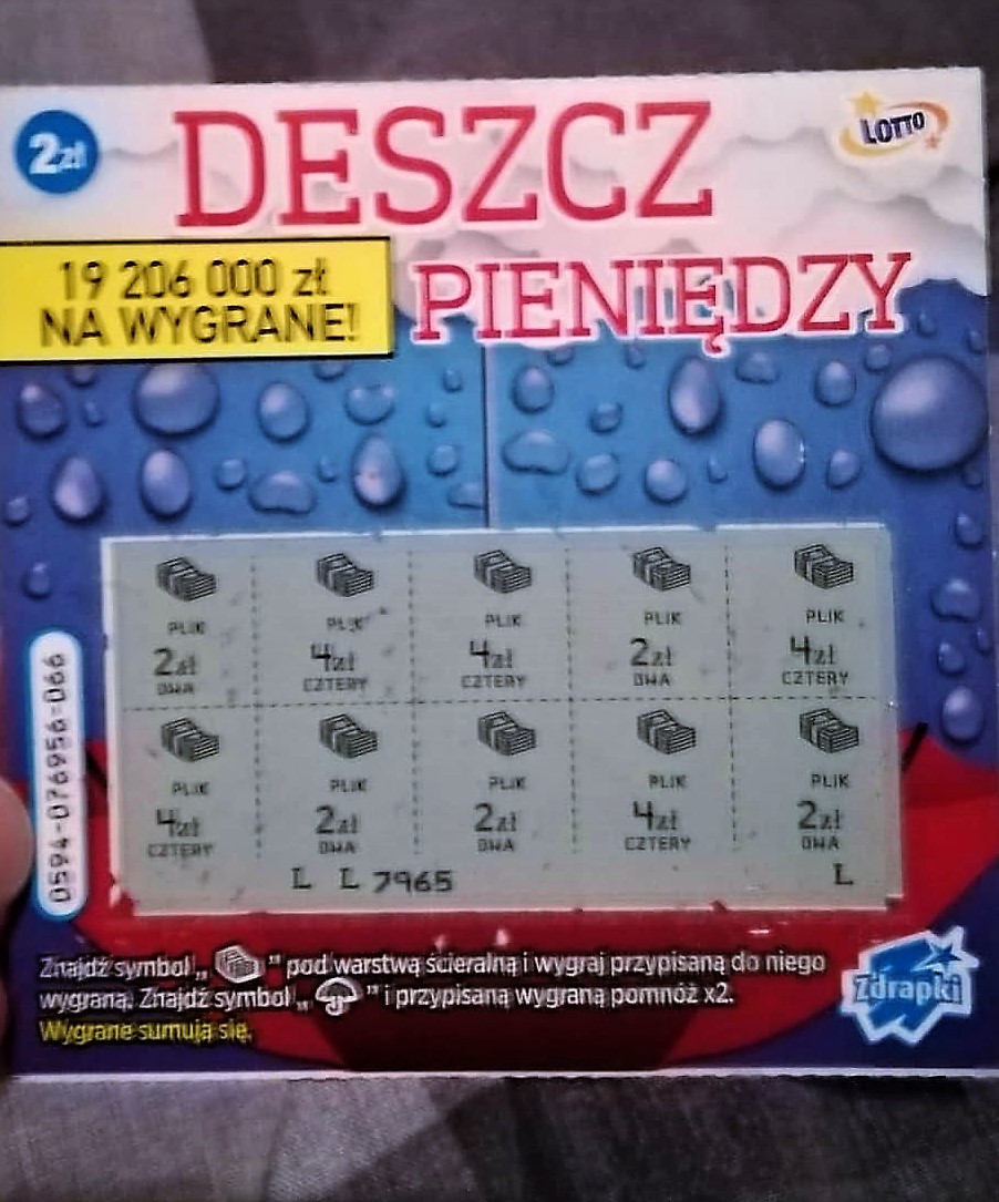 Taki trochę 'szczał' w dziesiątkę z delikatesów-zdrapka podana przez sprzedawcę. Wczoraj kupiłem dwie tanie zdrapki lucky7 -20 i szy50-zwrot