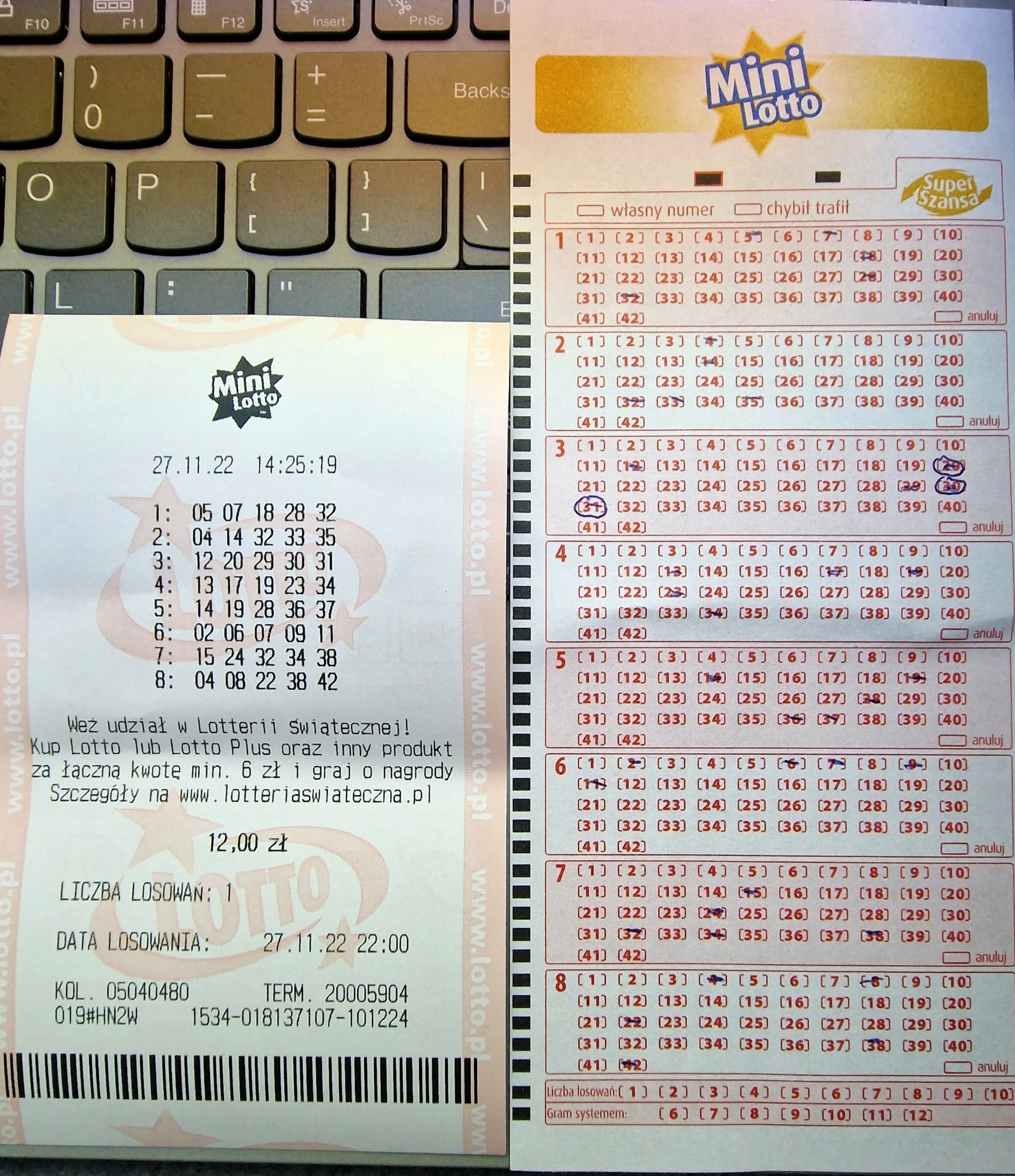 Prawdopodobnie pójdą dwa kupony po 9 skreśleń i będę czekał na prezenty