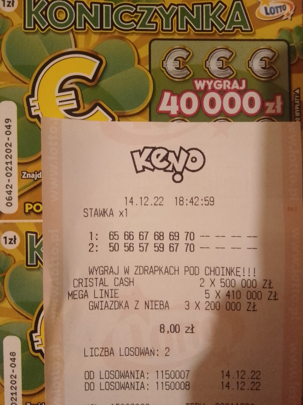 Miałam się właśnie pytać jak u Was z Keno. U mnie jak wcześniej wpadały może nie duże, ale fajne wygrane tak teraz lipa total.