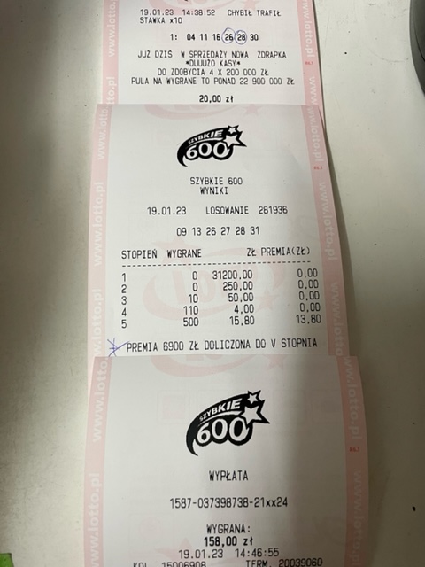 Godzina jak godzina, ale ktoś miał nosa że wysłał minimum na 40 losowań. Dowcip polega na tym, że wczoraj TS poległ na całej linii, ok 19:30 padło online jak i wszystkie kolektury.