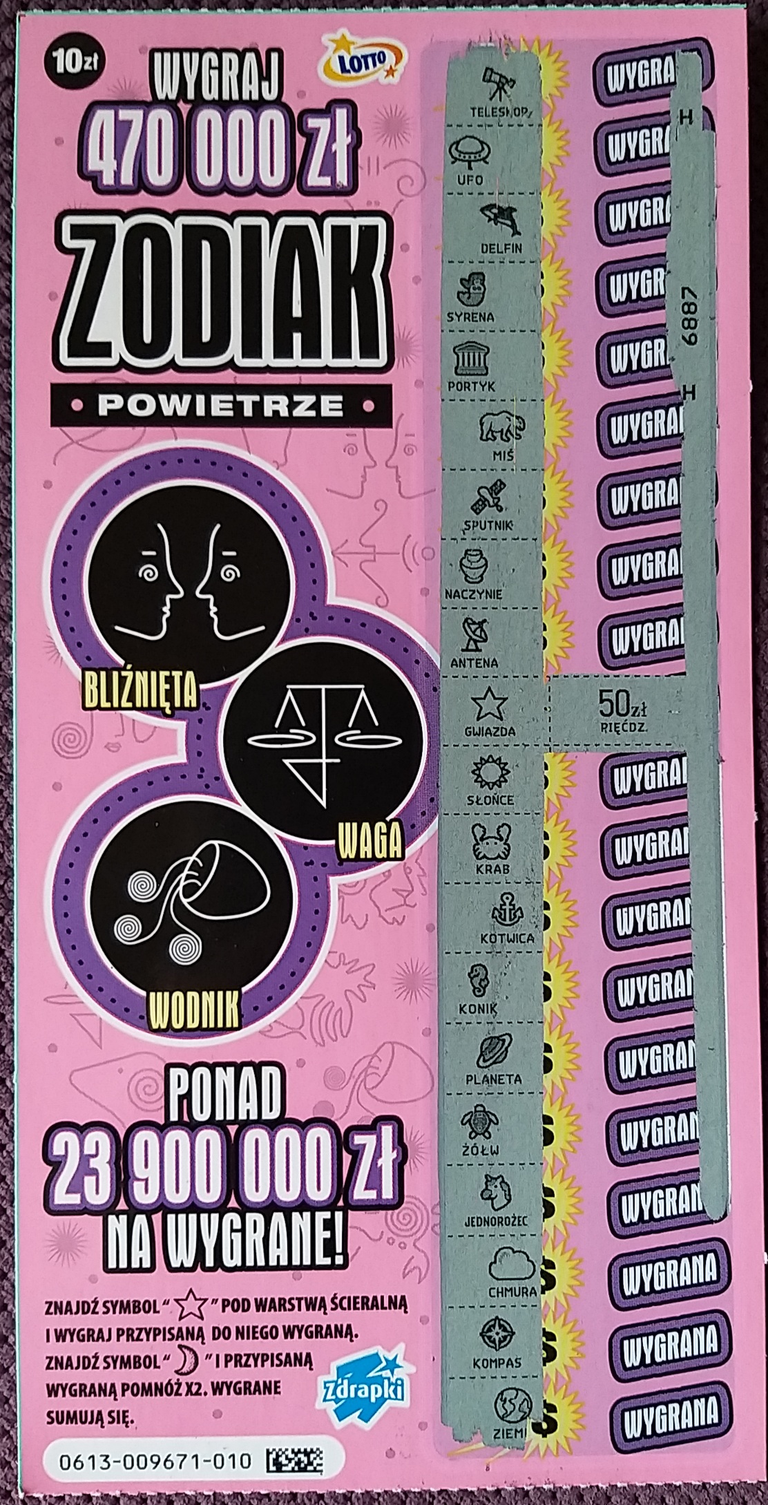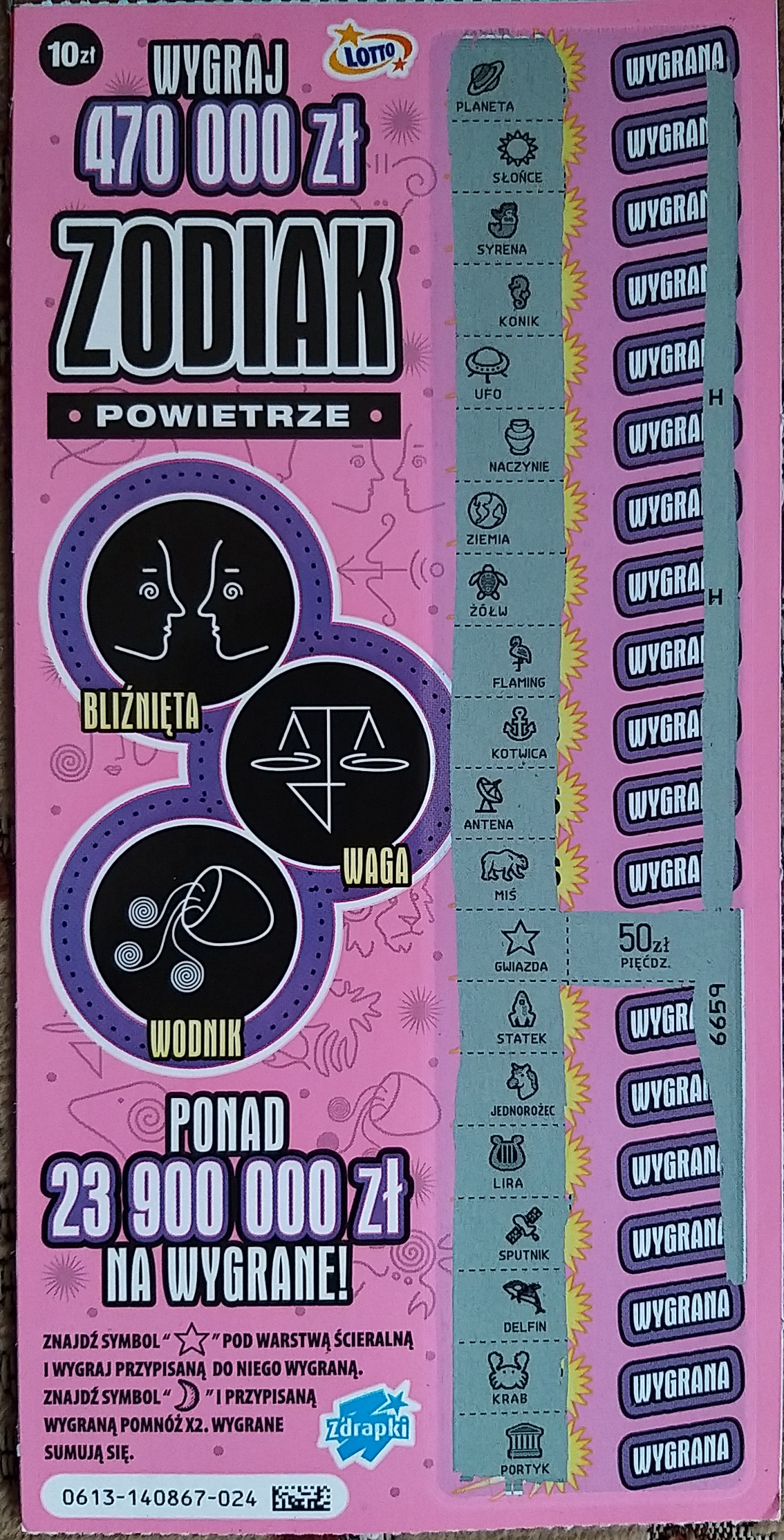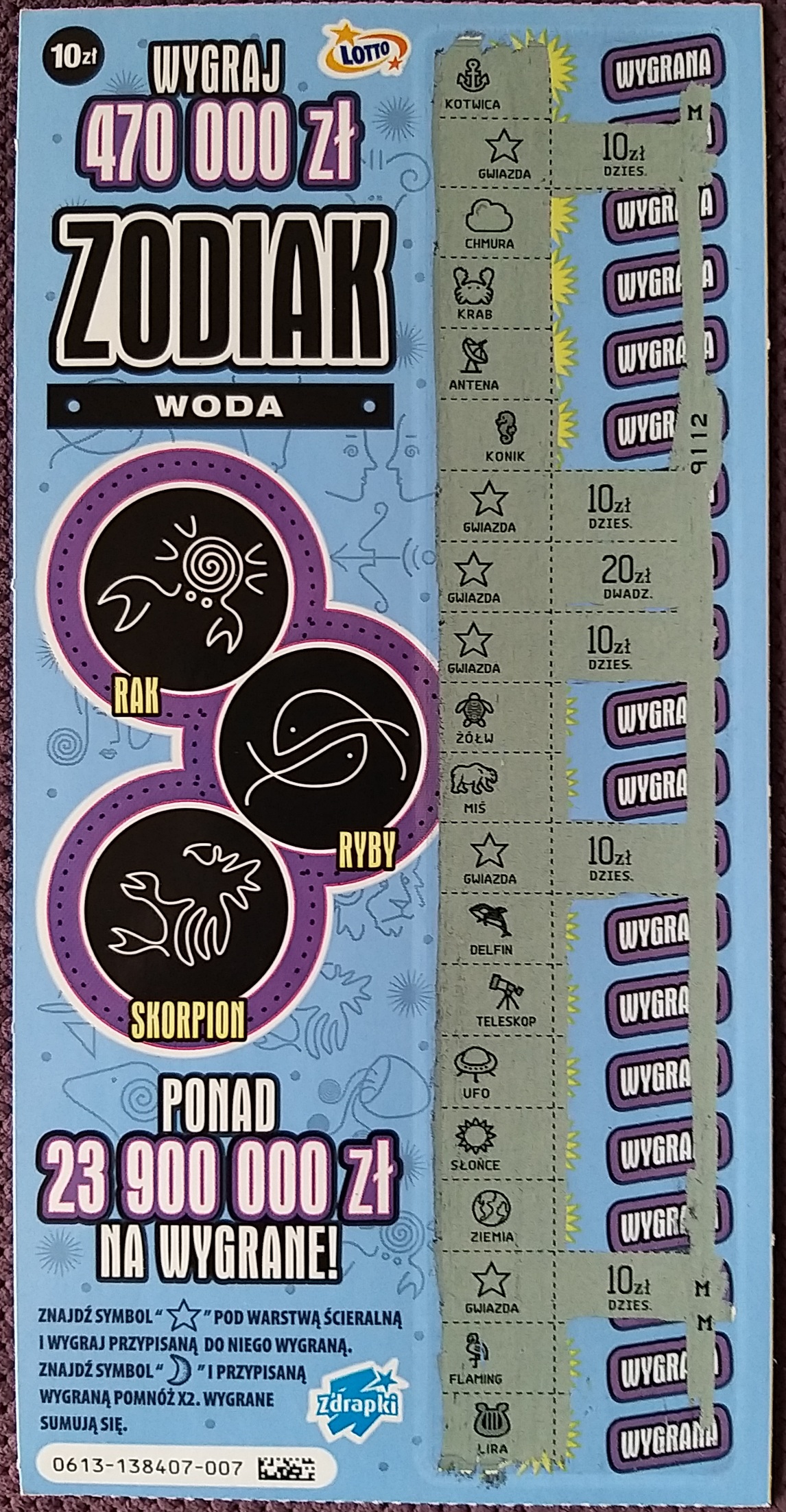 Co was napadło z tym zodiakiem to ja naprawdę nie wiem. Skoro odpowiada wam tabelka to bierzcie Bonus 7, to są identyczne zdrapki, z tym że w bonusie 7 sa jeszcze główne a w zodiaku nie...