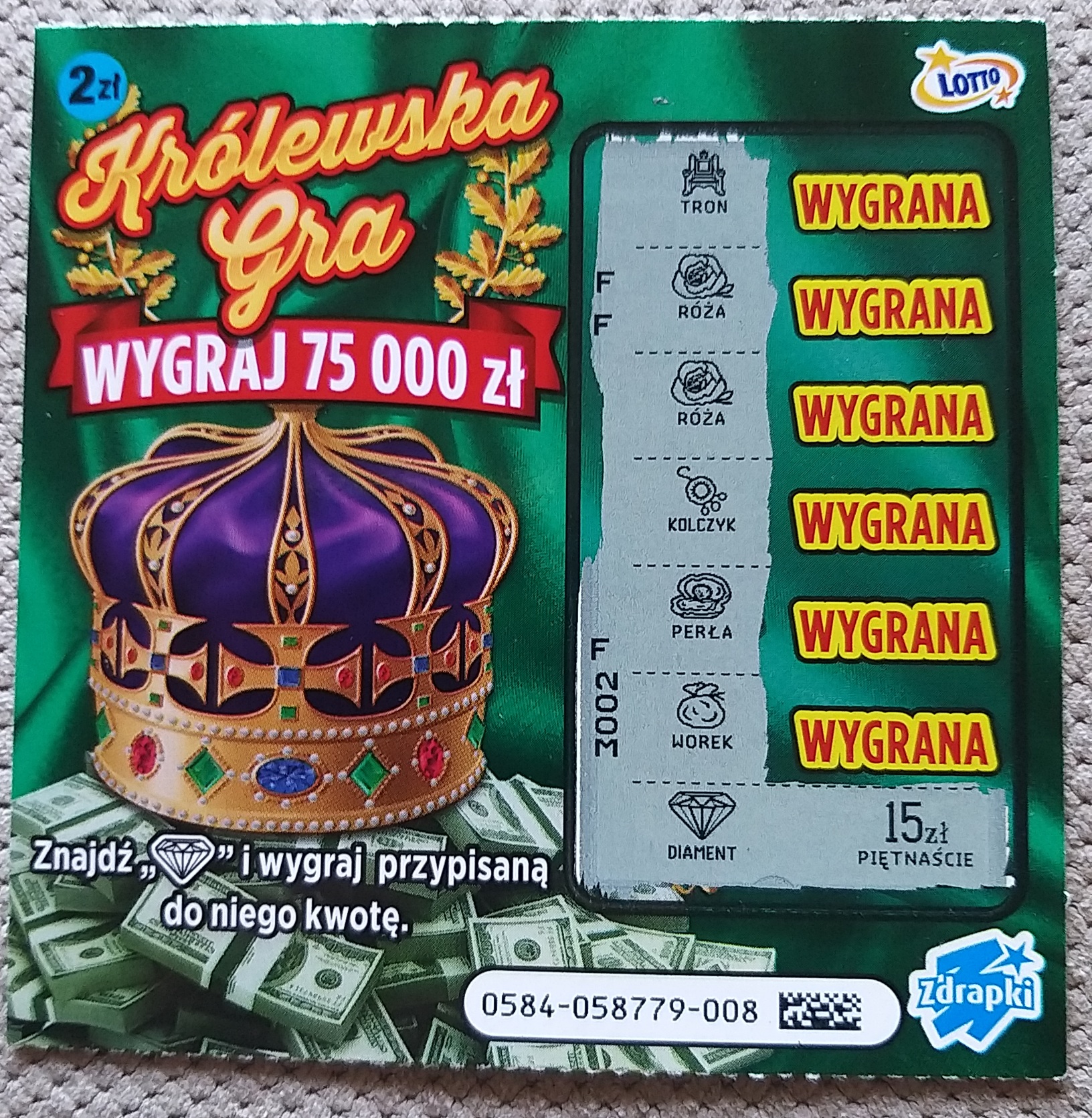 Wziąłem w dwóch miejscach po 3 sztuki żeby ot tak zobaczyć czy coś się przydrapie i git - w dwóch zdrapach po 15