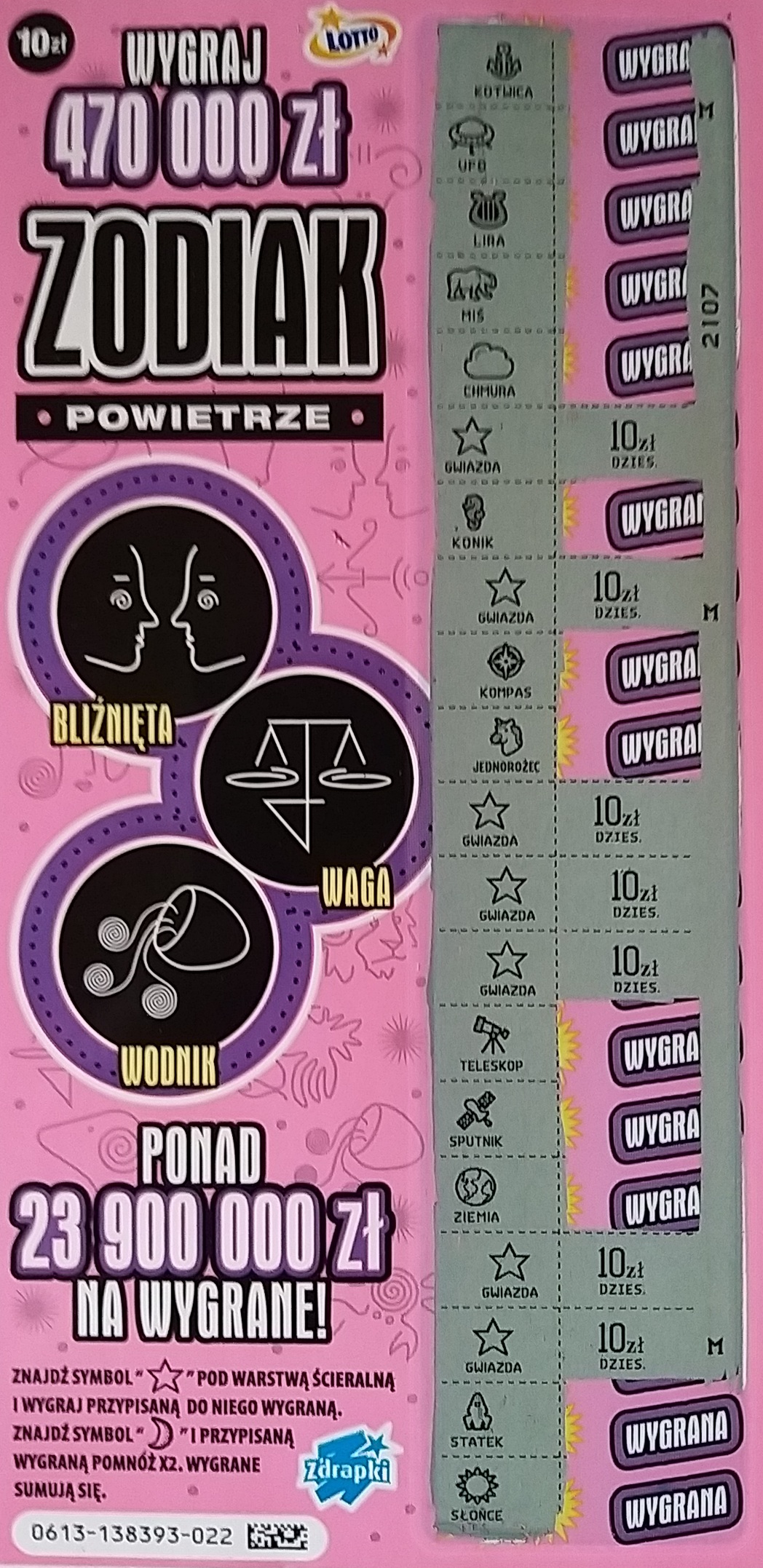 I znowu kupiony Bonus z Zodiakiem, ostatnie 5 od 021 do 025 i 90 ziko