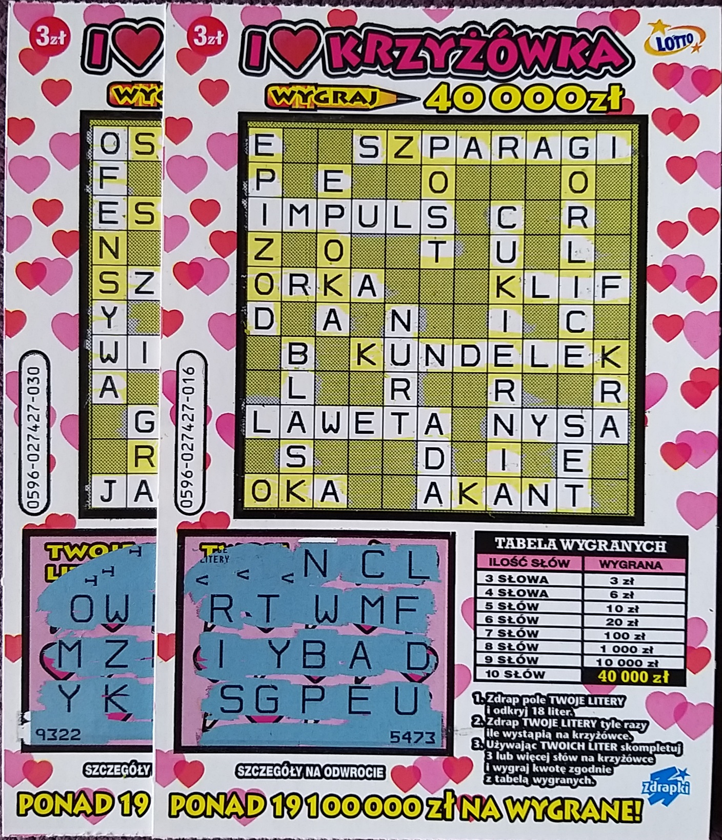 I dokończyłem wreszcie te 38 Krzyżówek i 1x20, 1x10, 3x6, 6x3 czyli 66 zeta więc w ogólnym rozliczeniu 30 zeta na plus