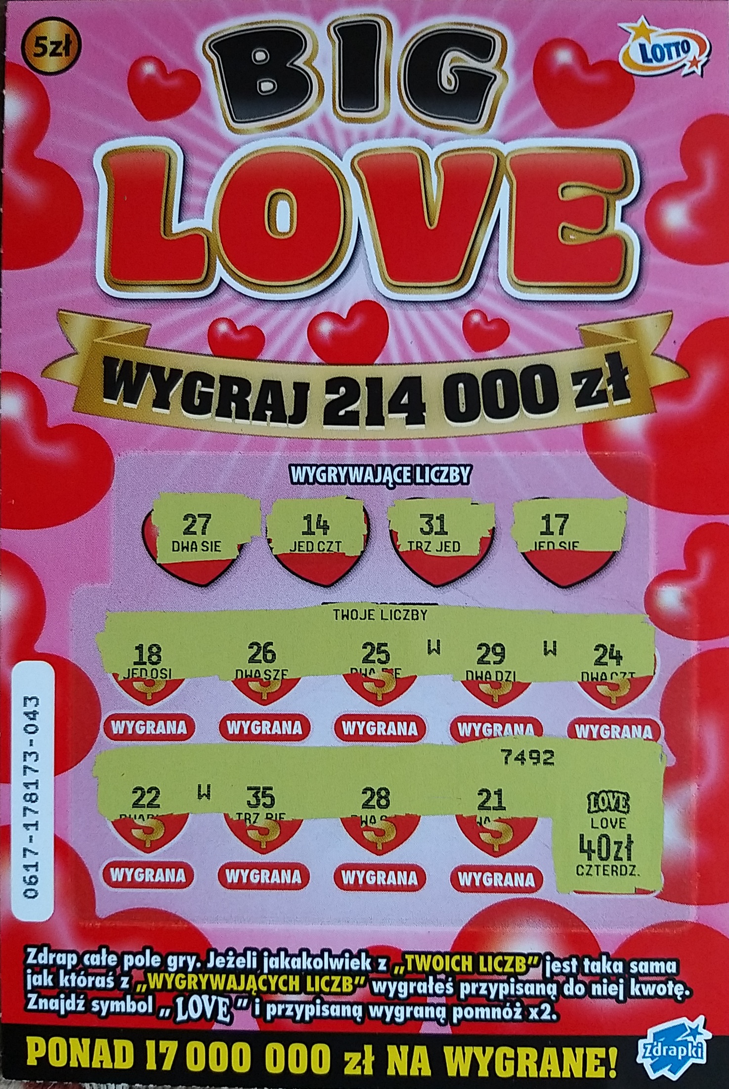 Walentynkowy dzień i 14 Big Love do kawki wydrapane i od razu trafione 2x40, 2x20, 3x5 wow już na plusie a na popo zostawione jeszcze 13 sztuk