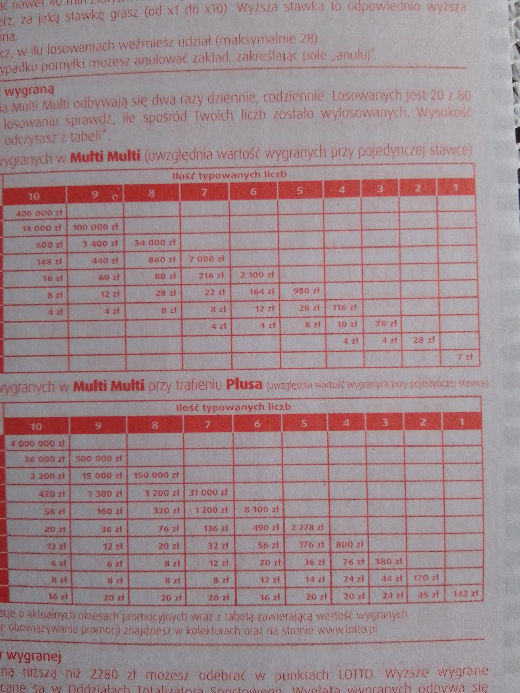A co do mm- to cena zakładu ma wzrosnąć o 60% a wiele wygranych rośnie o ok.40% a niektóre znacznie mniej np. za 7/10 jest 140 a ma być 148 co chyba jest największym nieporozumieniem. Ale wygrane za najniższy stopień rosną w większości przypadków o 100%