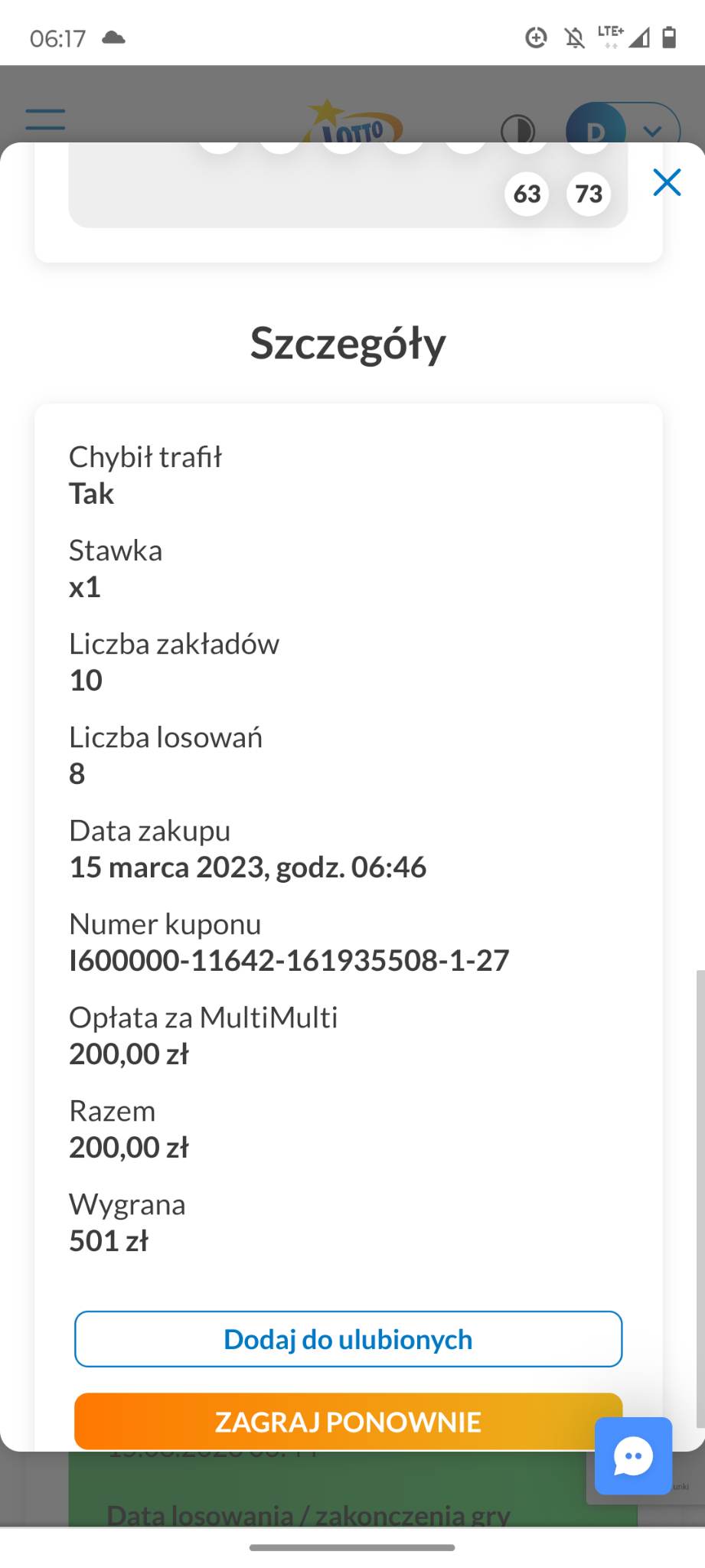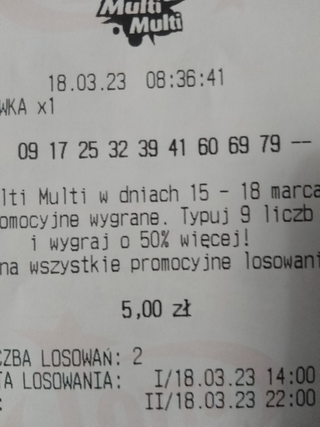 Udało się trafić w tej promocji 7/9 - 450 zł . Miałem 10 na 8 losowań bilans wyszedł w sumie +301 zł
