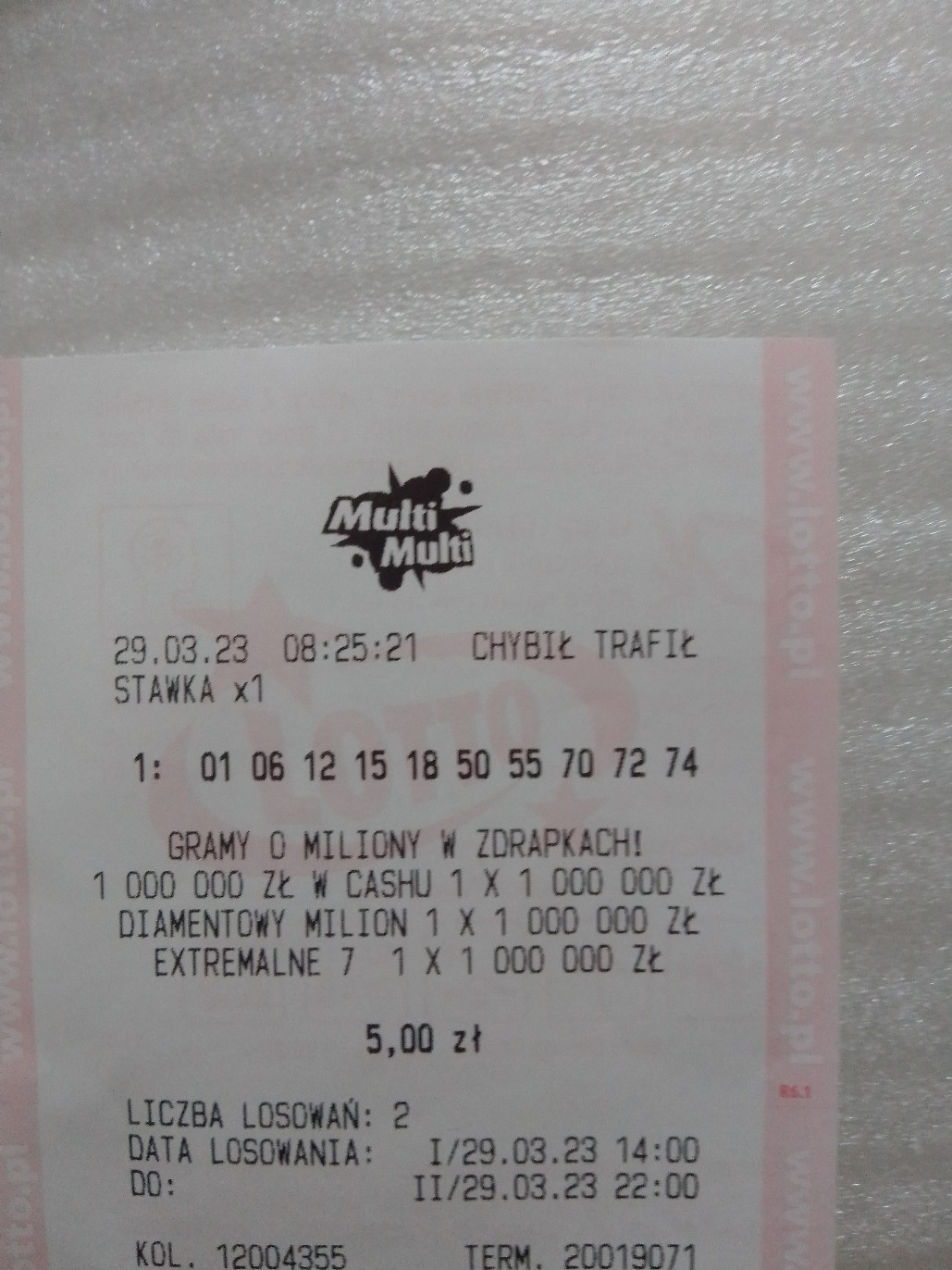 Była promocja na 9 skreśleń i od wczoraj wysyłałem po zakładzie na losowanie i... cztery razy pod rząd 0/9. Aż wydaje się to niemożliwe... a jednak!