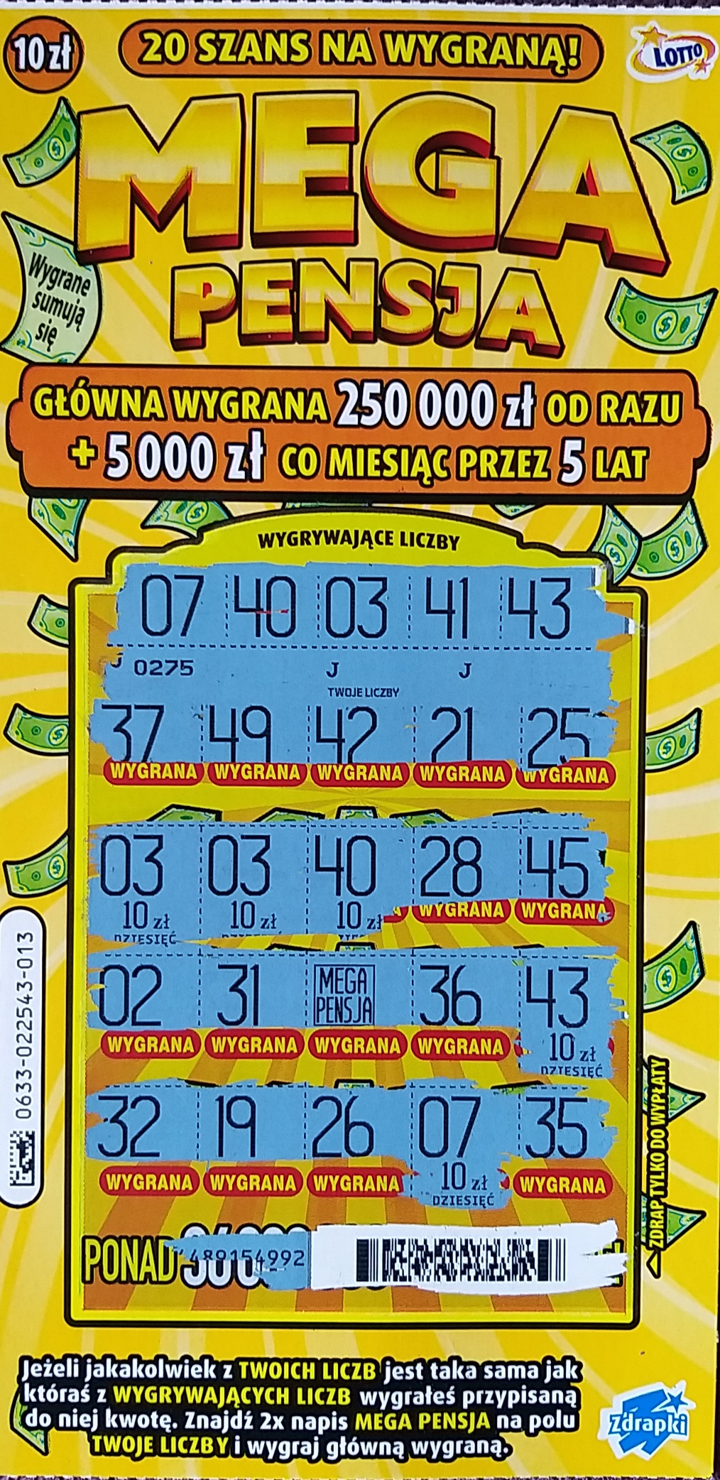 W miksie był nr 8 i 100 zł rozbite na 2x 50, ta zdrapka dała plusa