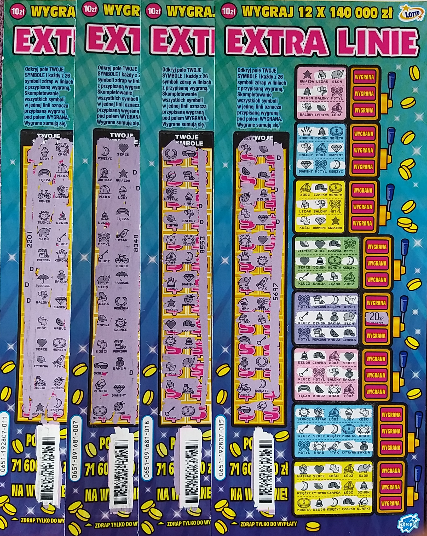 Następnie wymienione w niedzielę w innej kolekturze i wpadło kolejne 20 zł w nr 015