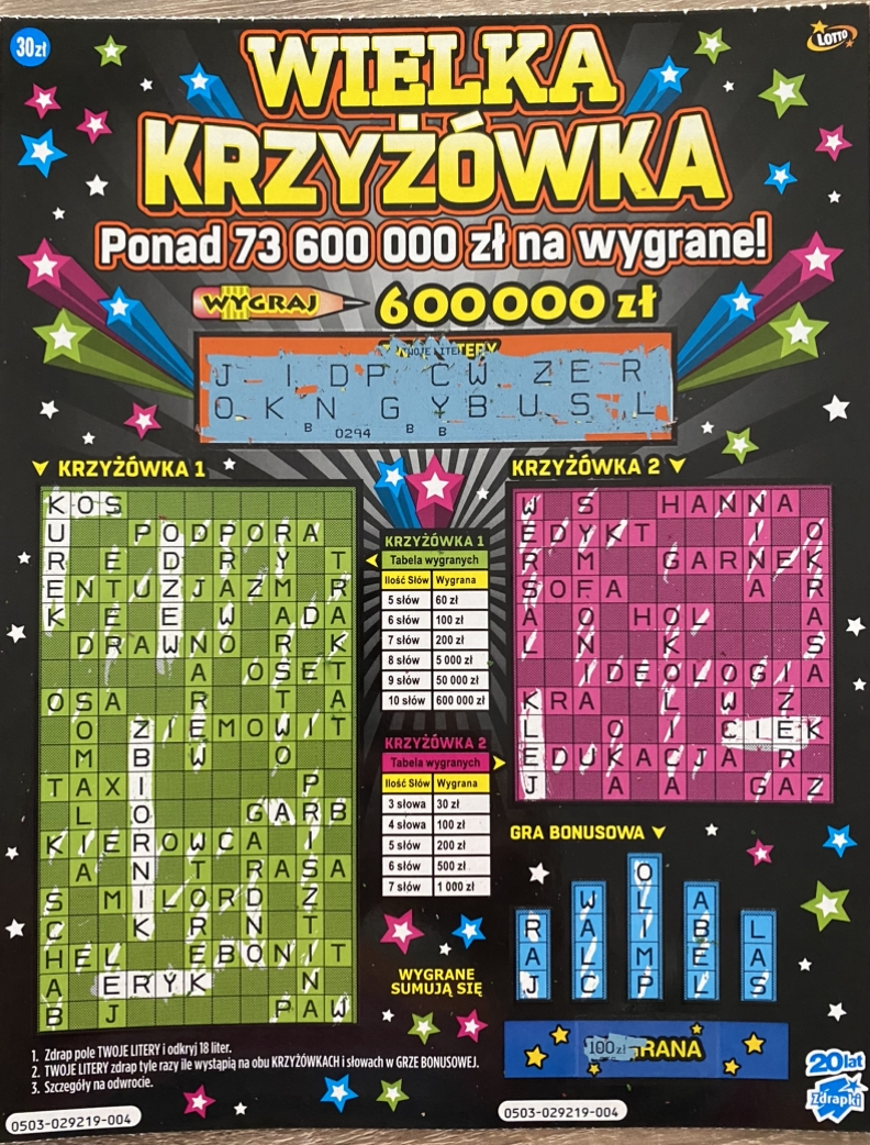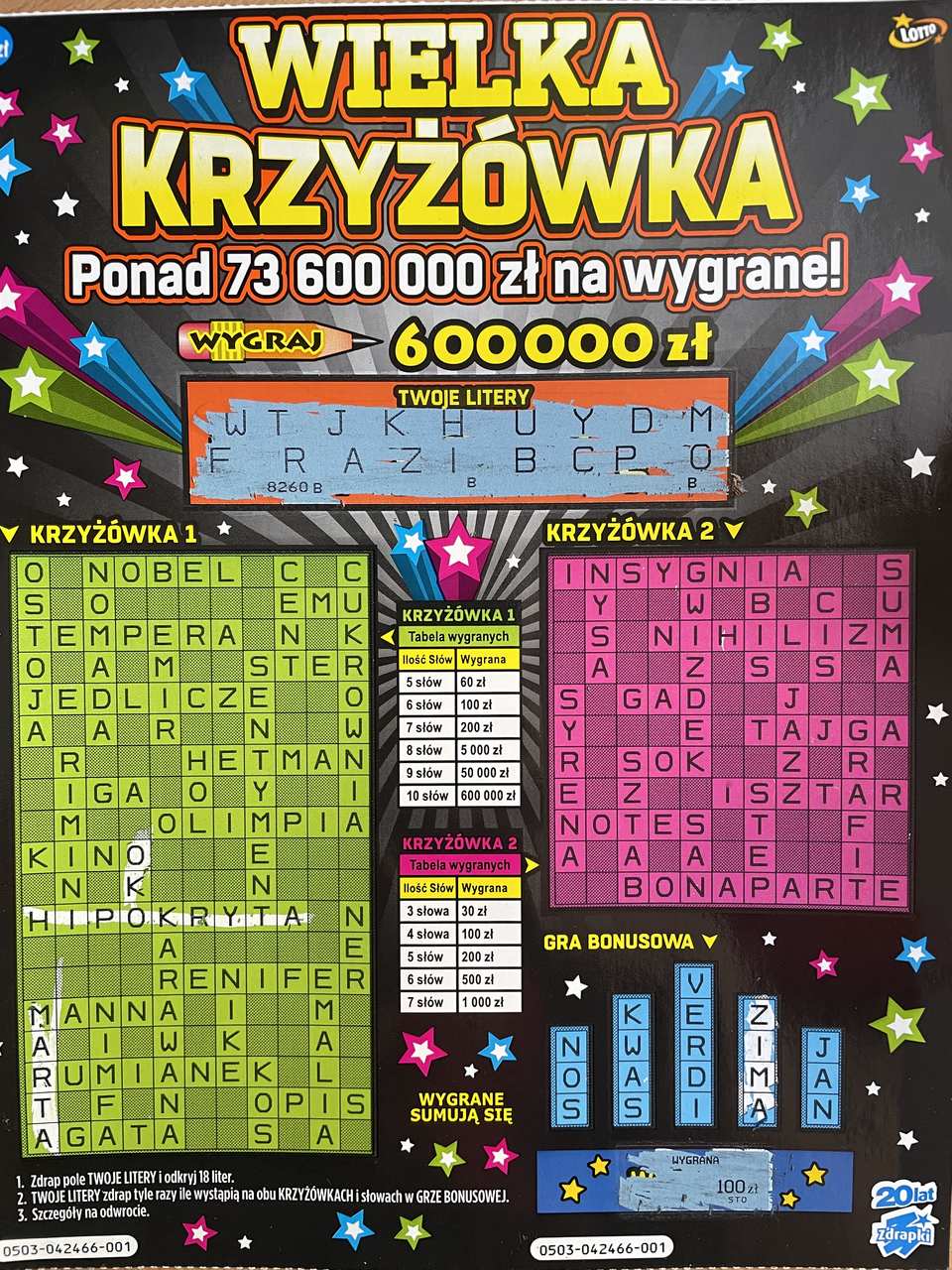Do zdrapki NDR dobrałam dziś 3 Wielkie Krzyżówki i bingo