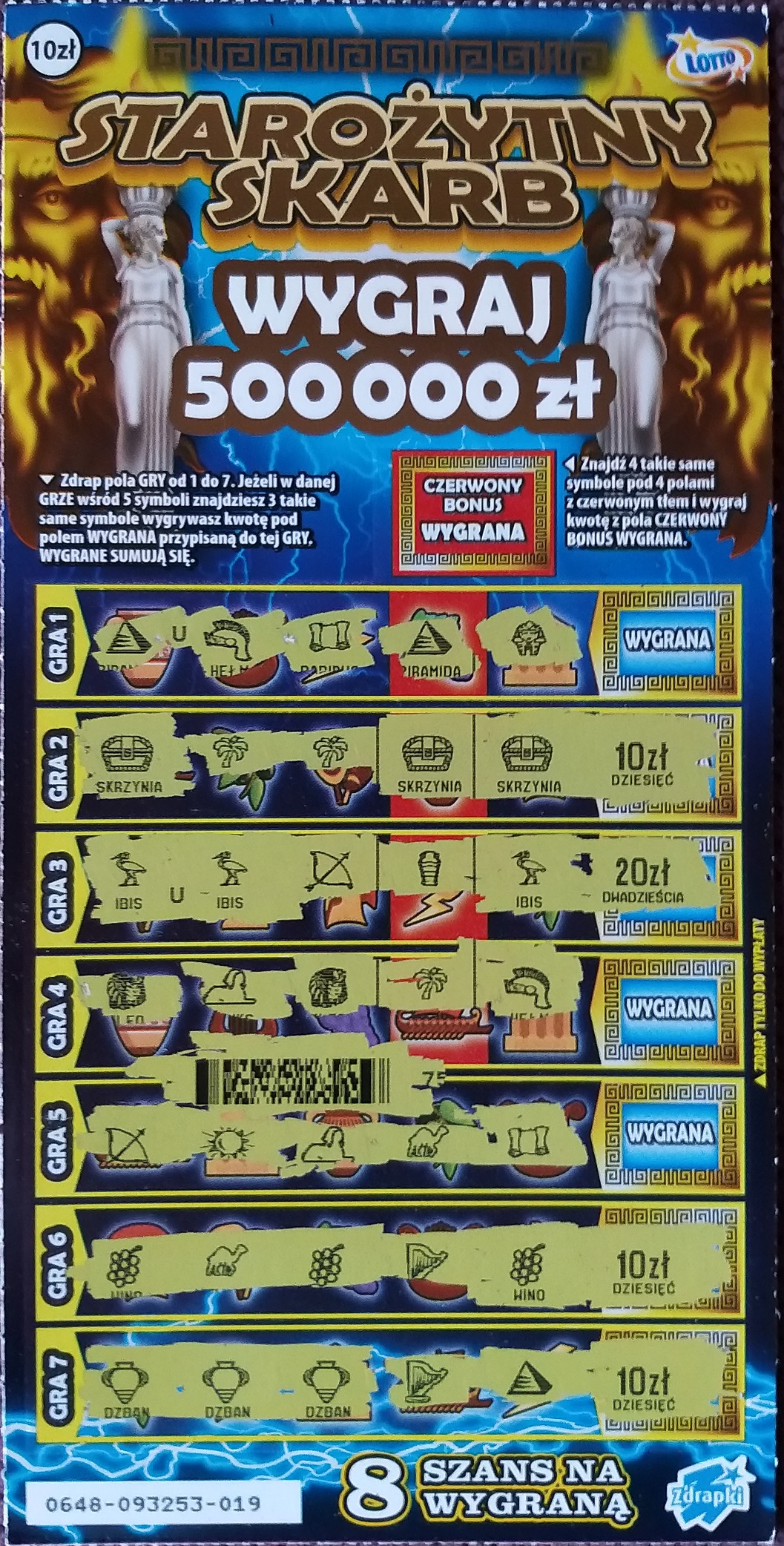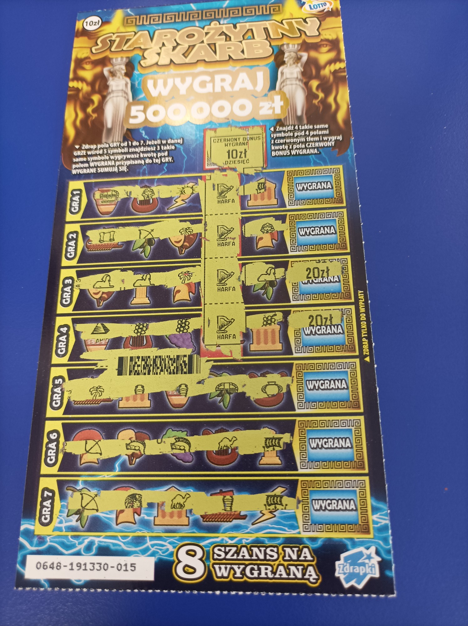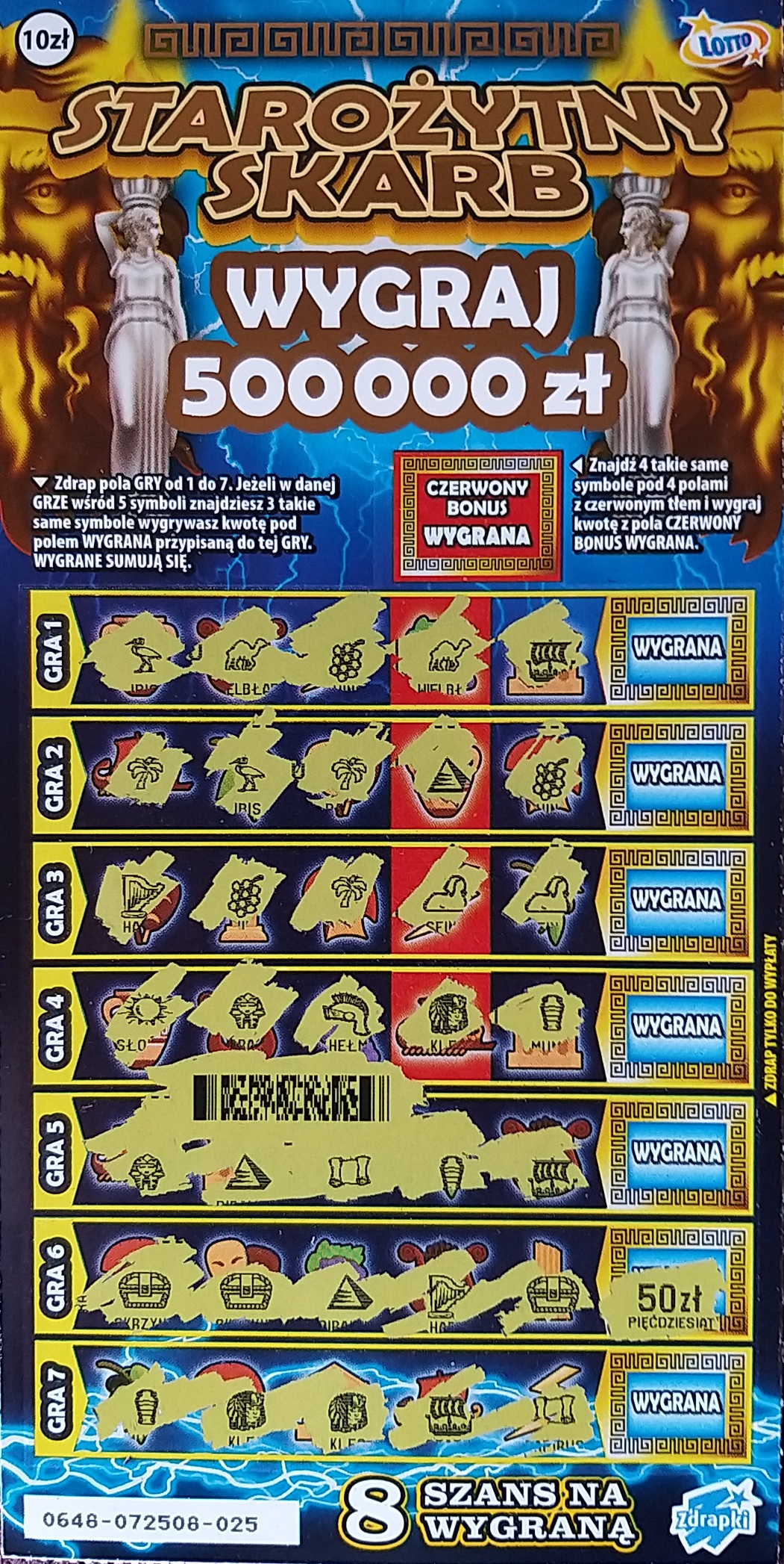 Kupione 2 sztuki nr 008 i 014-obie puste. Dziś wszystkie zdrapki zakupione puste.