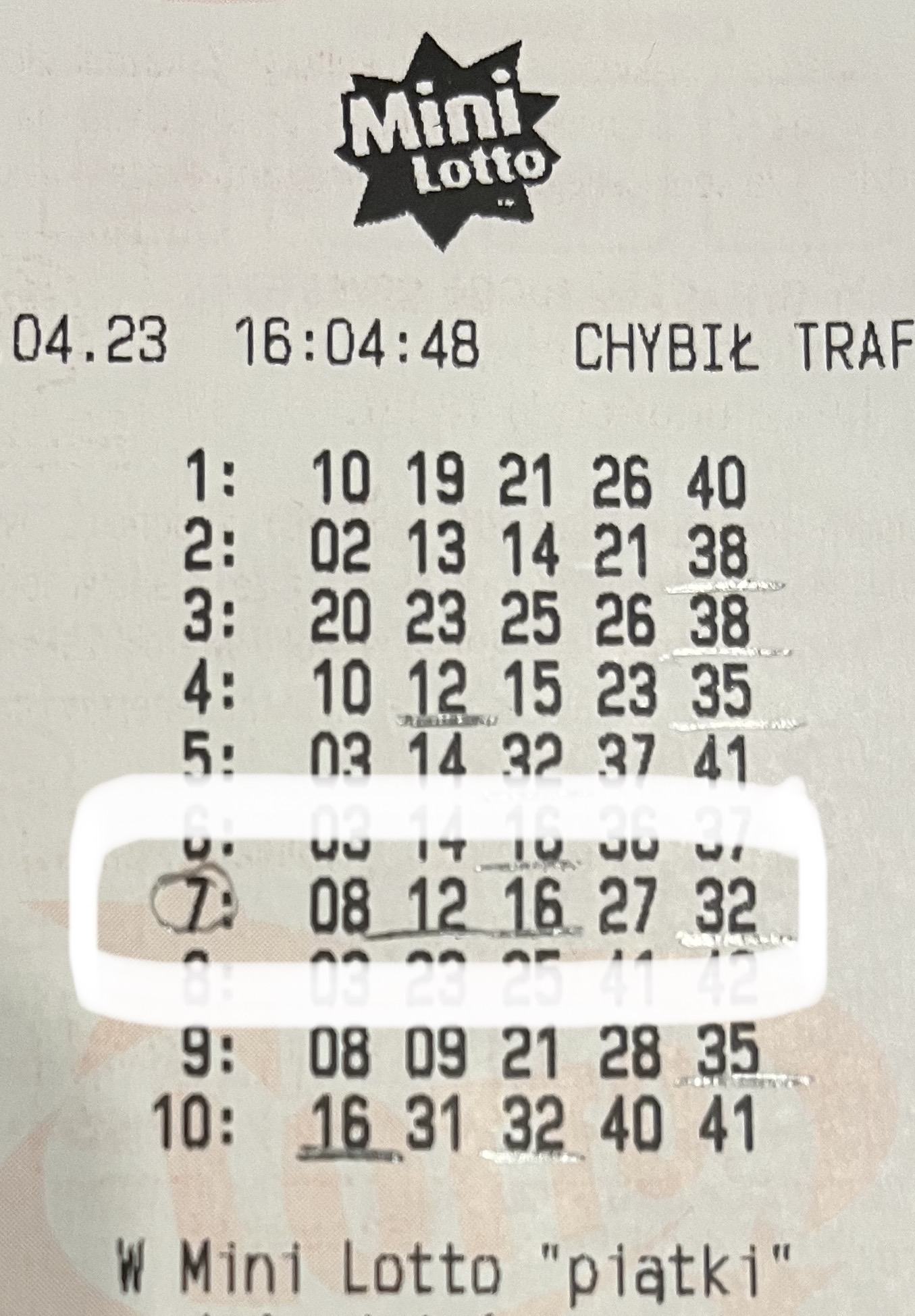 Posłane 102 zakłady mini na 102 kuponach na dwa losowania.