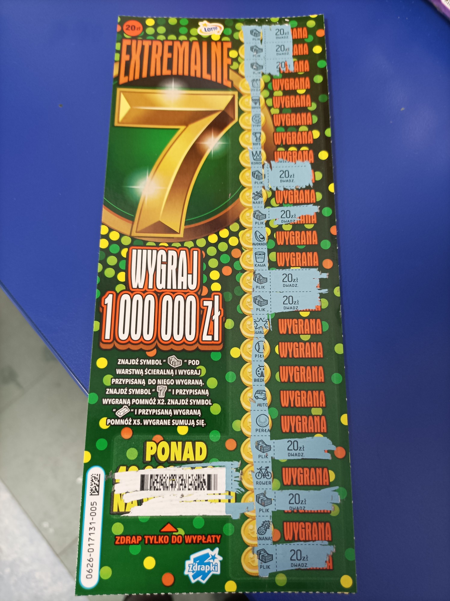 Po miesiącu Totalnej obrazy na zdrapki dzisiaj przystąpiłem do działania na 4 kupione wynik 20 i 100