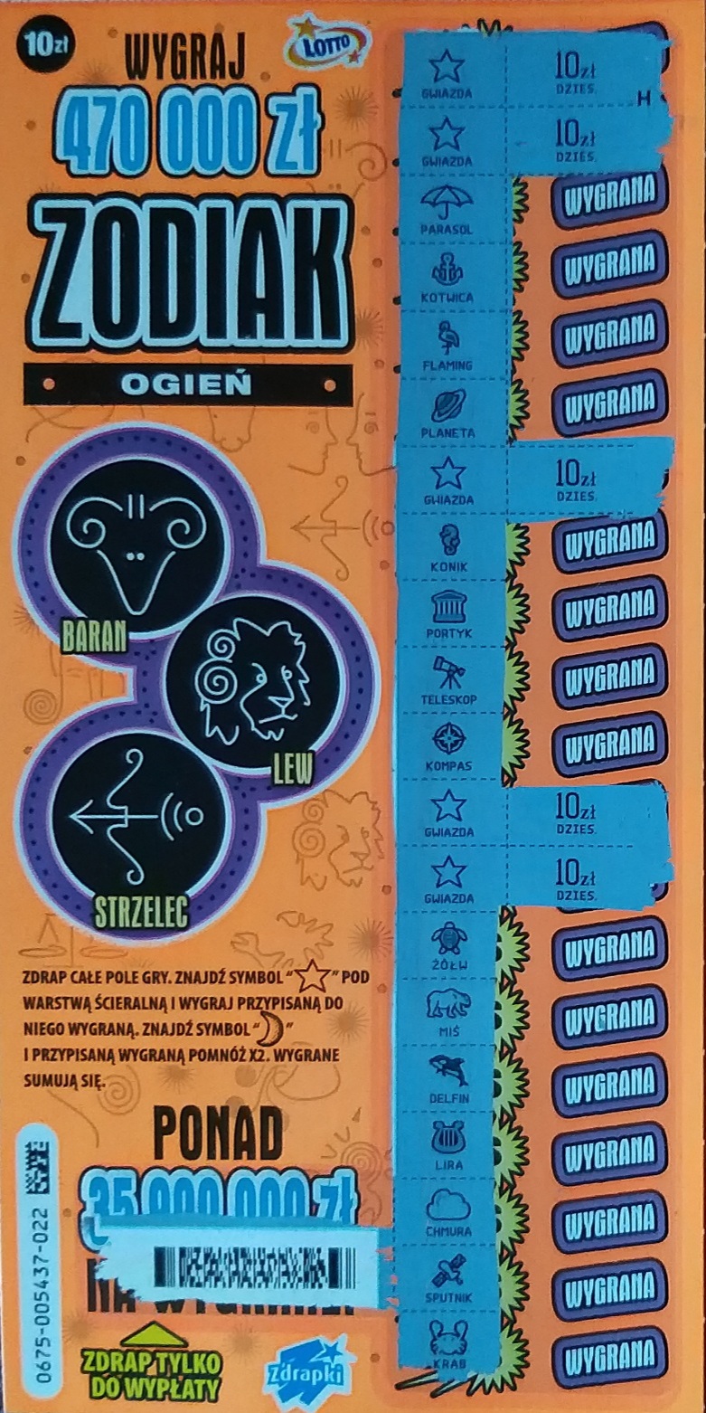 Ta edycja jest dla mnie niesamowicie szczęśliwa jak nie pełno 50-tek, to już kolejna losowa w sumie trzecia 70-tka na dodatek w moim znaku zodiaku