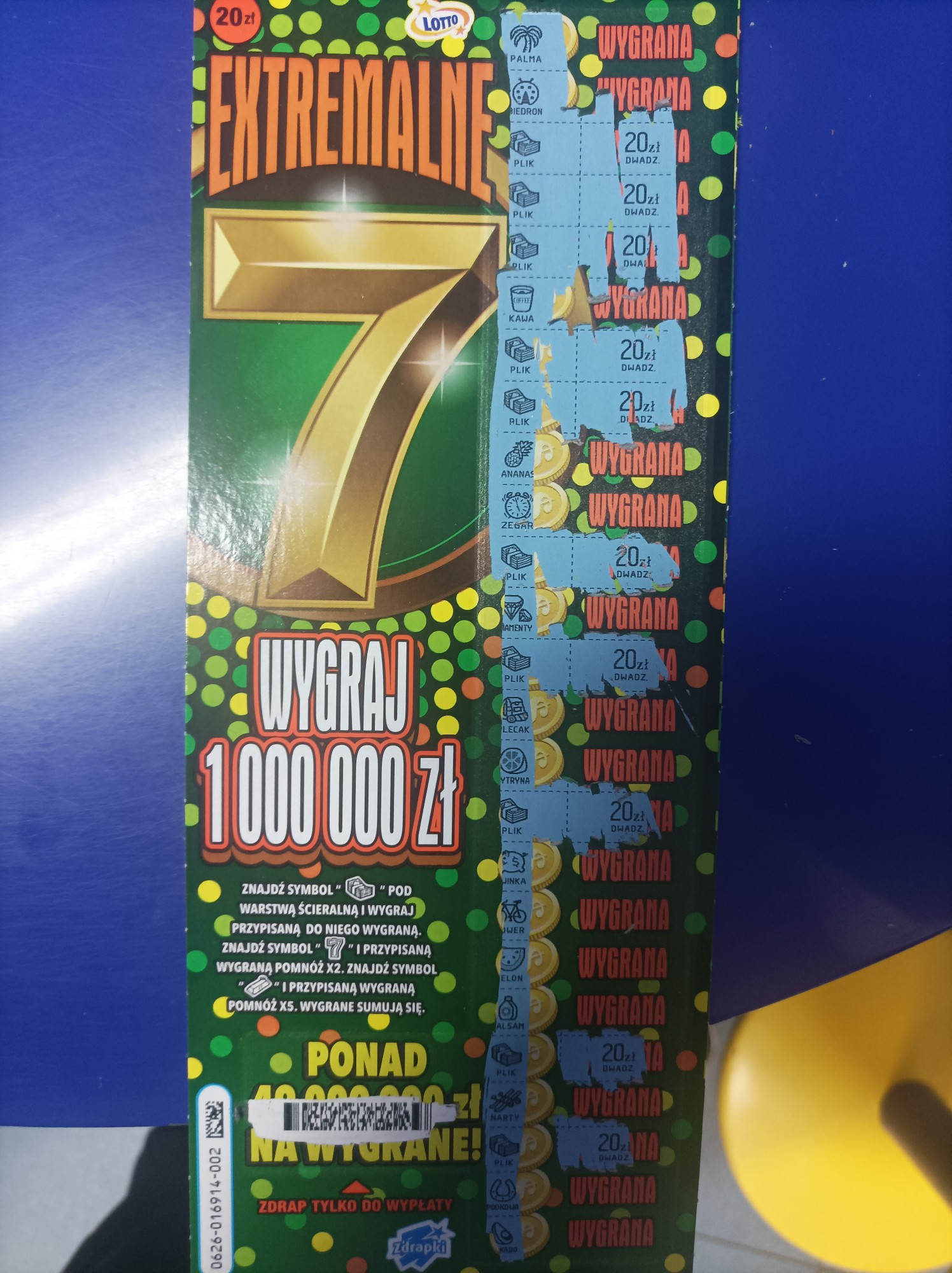 Po miesiącu Totalnej obrazy na zdrapki dzisiaj przystąpiłem do działania na 4 kupione wynik 20 i 100