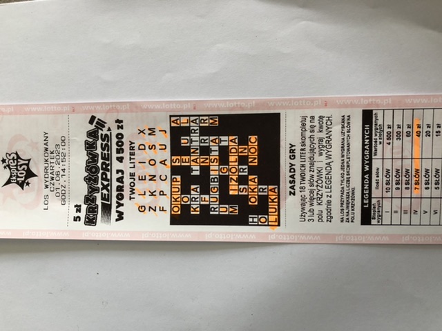 Kupione każdy po jednym. Na wydane 29zł wygrana to 30zł