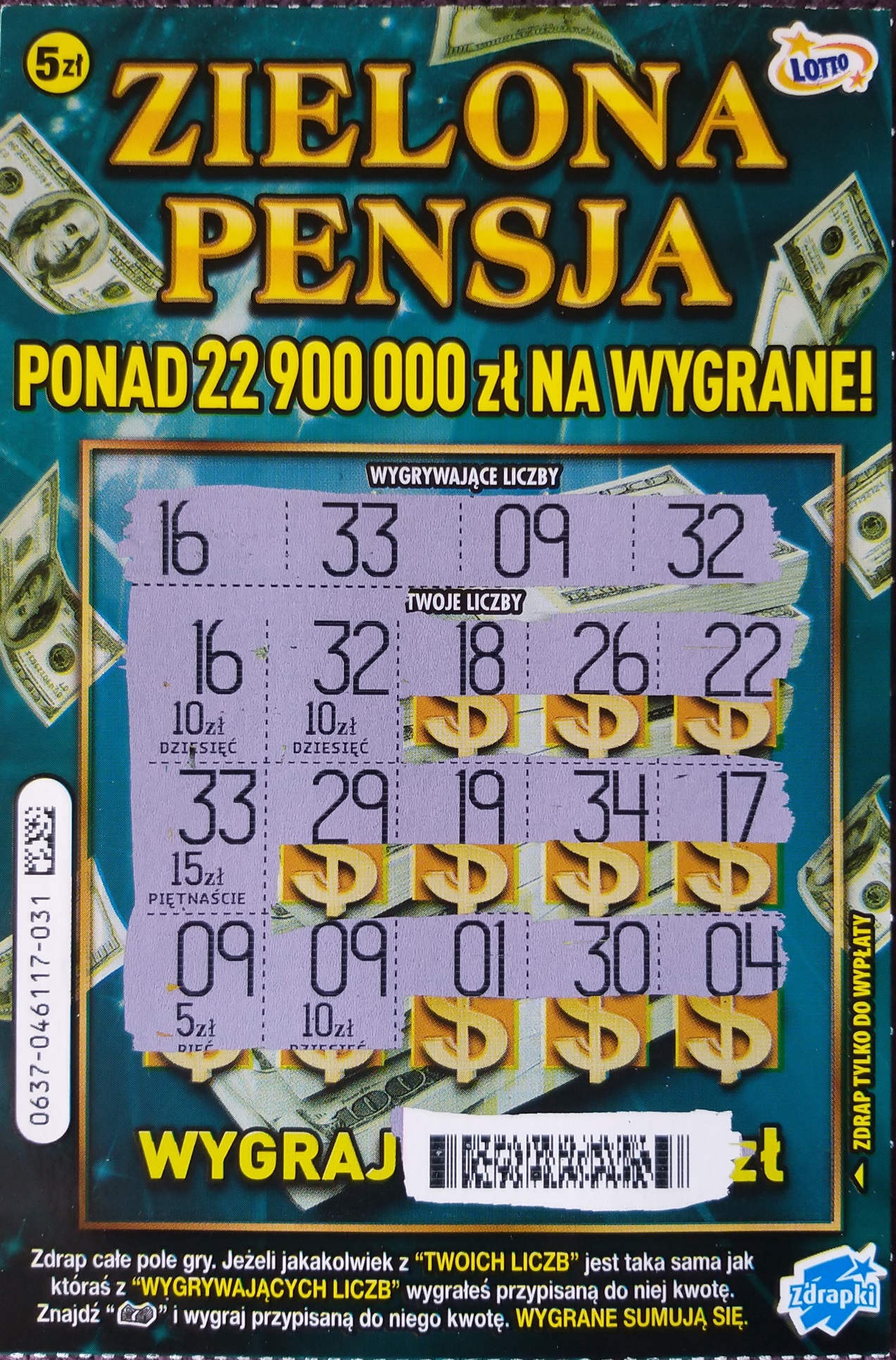 Powiem Ci, że ja właśnie już od dłuższego czasu brałem po sztuce Zielonej Pensji oraz Premii, bo widzę, że u mnie jest tego sporo(z przewagą ZP) i to praktycznie w prawie każdym przypadku dobre przedziały. ZP jeszcze chyba trochę lepiej schodzi, przynajmniej na przykładzie kolektury którą najczęściej odwiedzam. Bo Premię jak zacząłem brać nową paczkę, to tylko ja kupowałem, a na kilkanaście sztuk miałem zaledwie dwie drobne wygrane. Dzisiaj do polowania na WK wziąłem w jednym miejscu po sztuce i podane przez panią obie wygrane i po dzisiejszym utopieniu na WK chwilowo skoncentruję się na tych zdrapkach za piątaka.