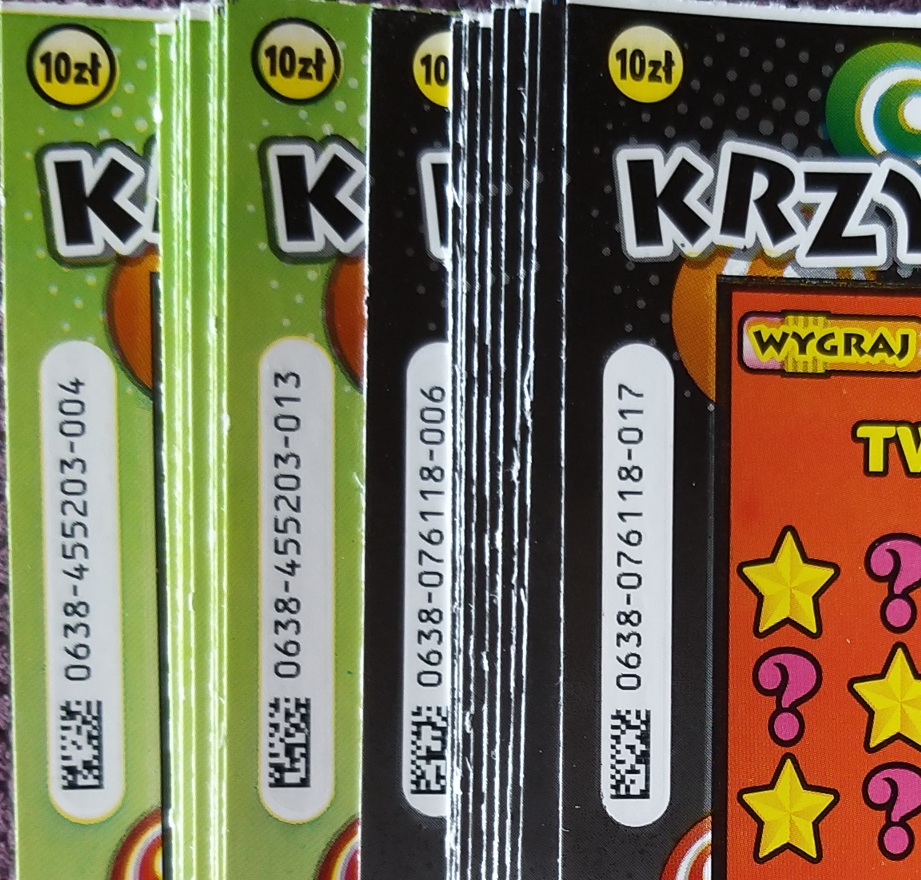 Wybrałem się dziś po osiedlach i udało się trafić na resztki nawet dobrych przedziałów, będzie co drapać w week, zdobyte 10 zielonych (pomieszane numery) i 12 czarnych (od 6 do 17)